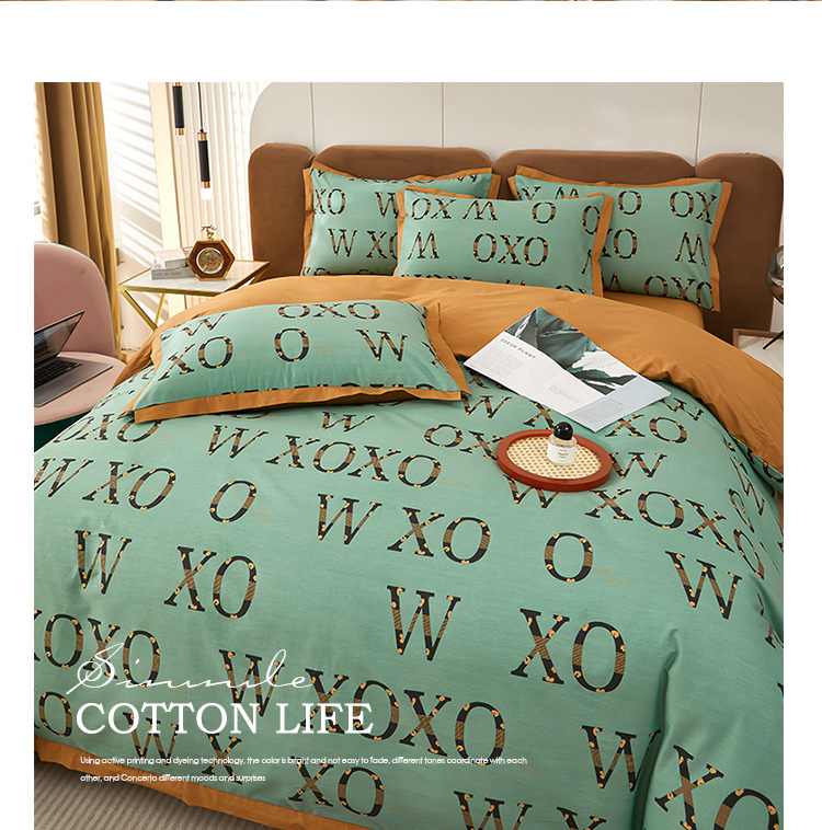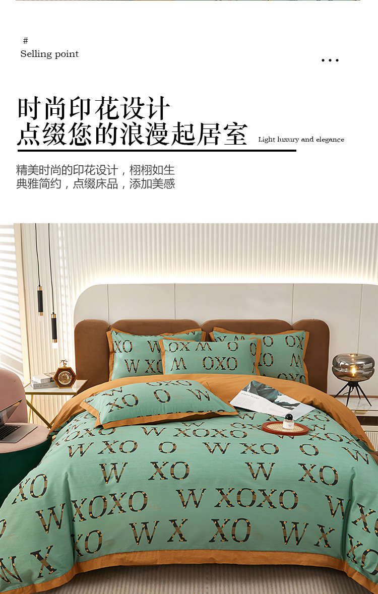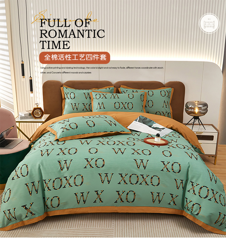 雲归梦 新款13372全棉活性工艺款小版印花四件套 亚兰绿
