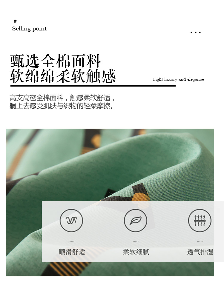 商品名称:雲归梦 新款13372全棉活性工艺款小版印花四件套 亚兰绿