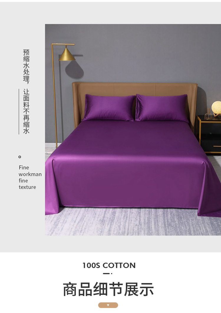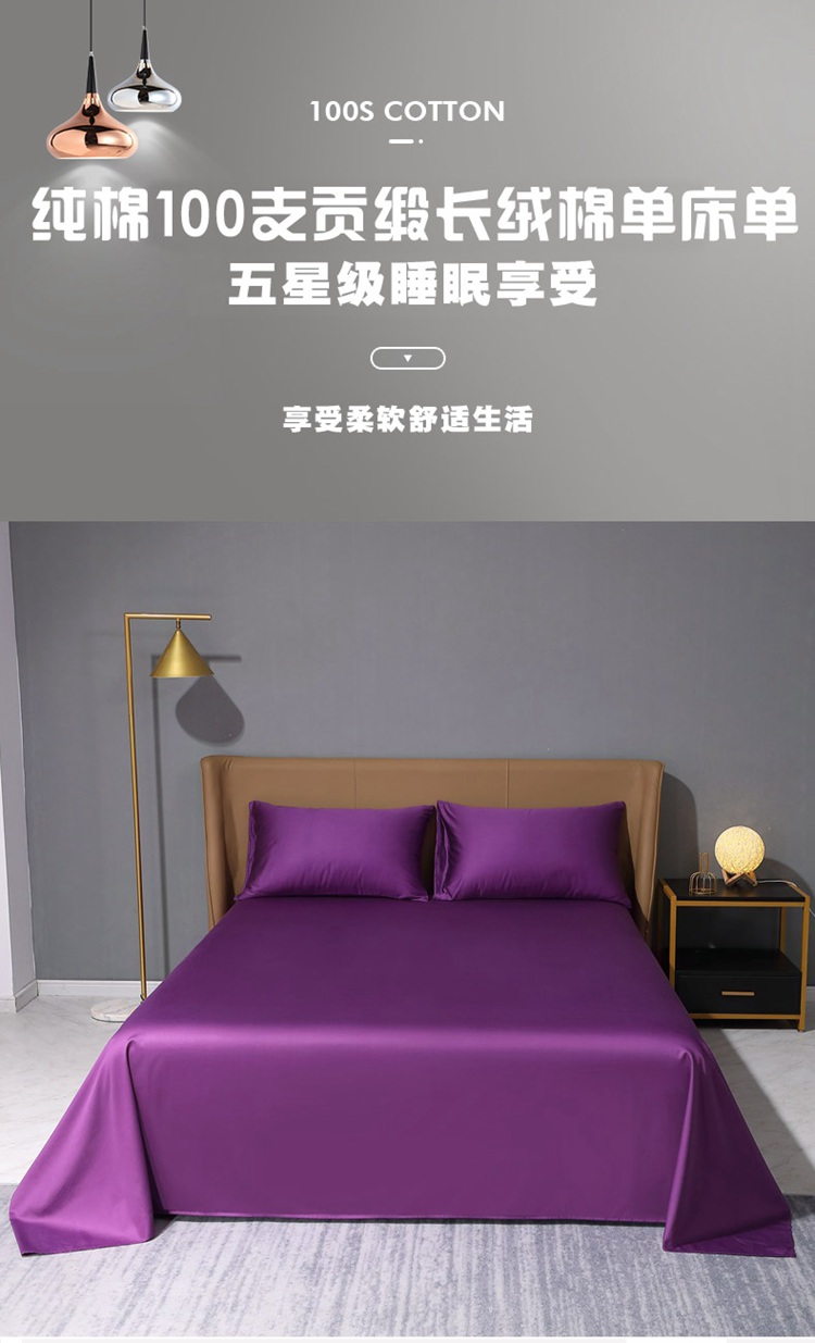 商品名称:晶缦家纺2023新款纯棉50支双股贡缎长绒棉纯色单品床单 纯沐-罗兰紫