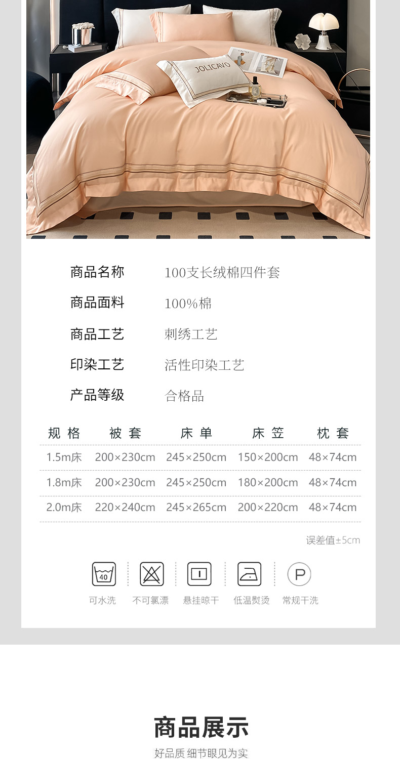 商品名称:【60支长绒棉四件套】全棉纯棉床单被套纯色简约澳棉床笠款刺绣床上用品