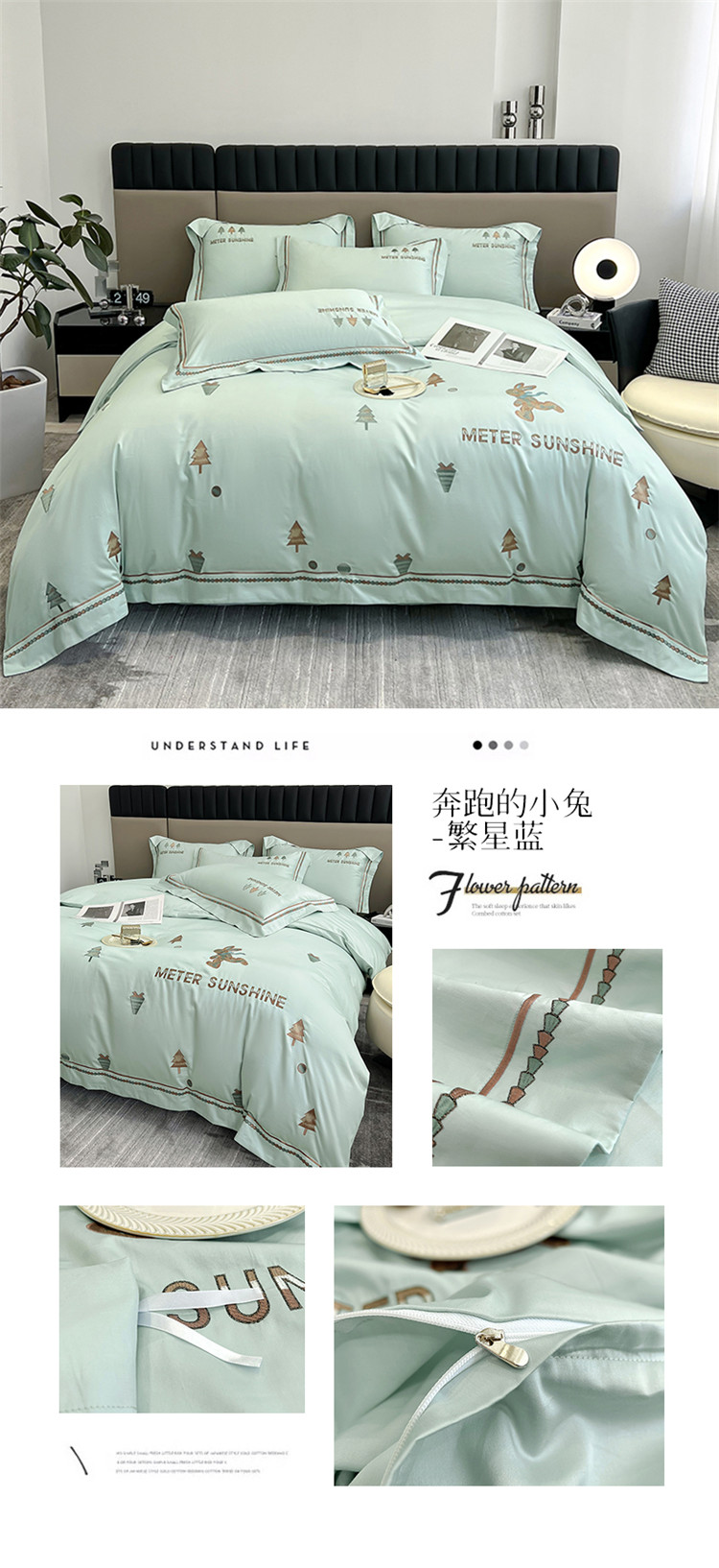 商品名称:家居1号2024新款13376全棉四件套-奔跑的小兔 奔跑的小兔-繁星蓝