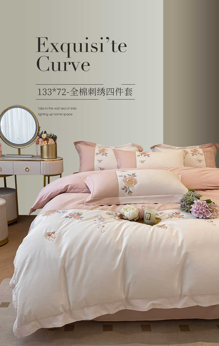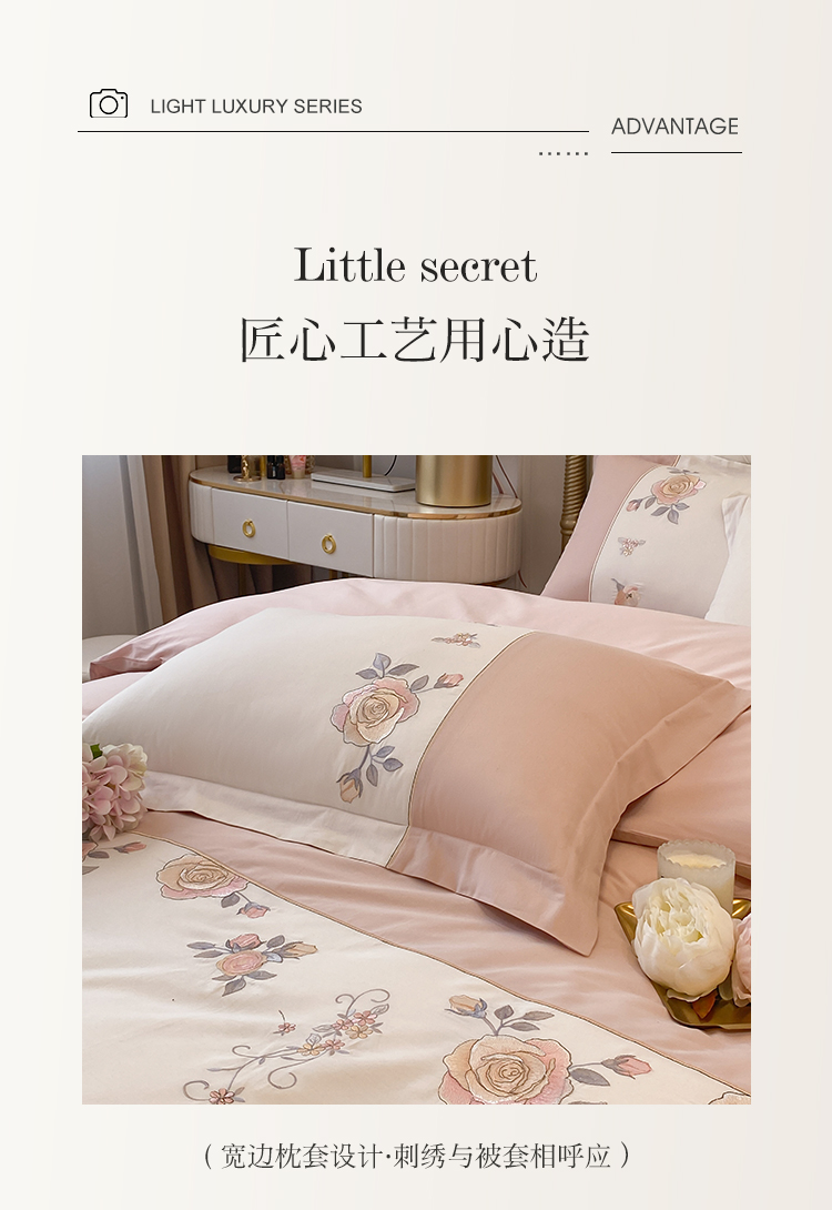 (总)理想家家纺 2025新款纯棉轻奢刺绣四件套-小秘密系列场景二,小秘密 粉,小秘密 黄,小秘密 蓝
