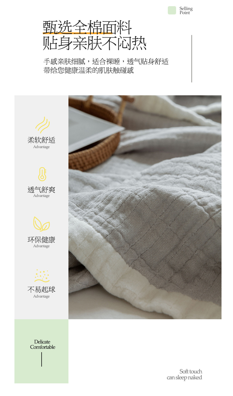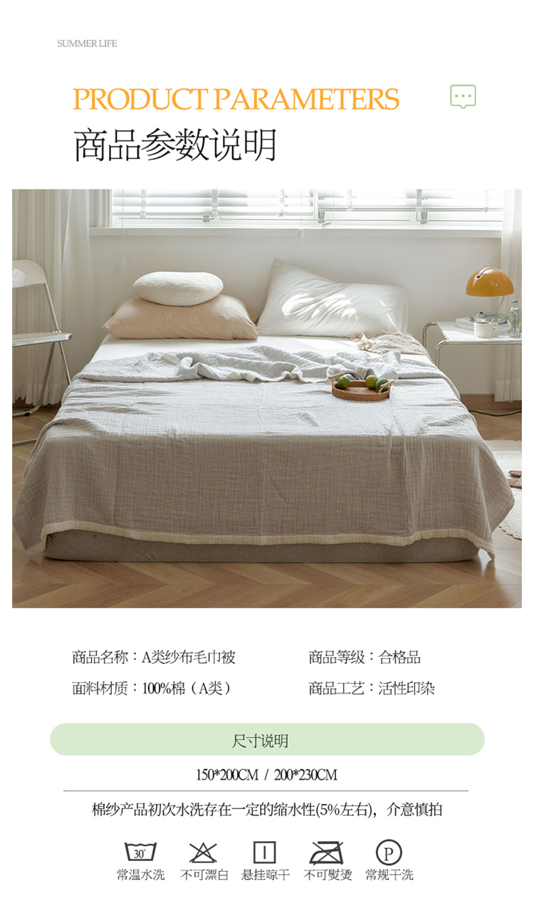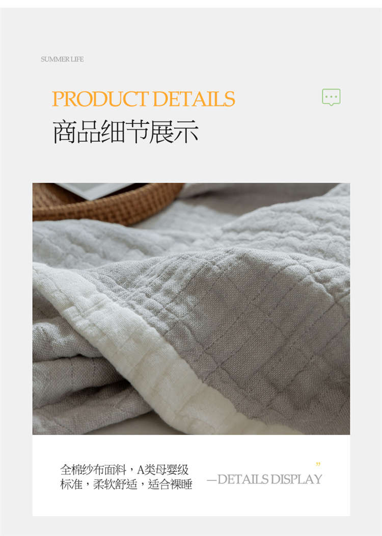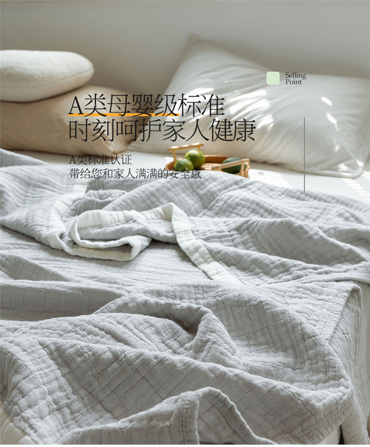 商品名称:雯雨家纺2023新款A类全棉纱布毛巾被 浅灰