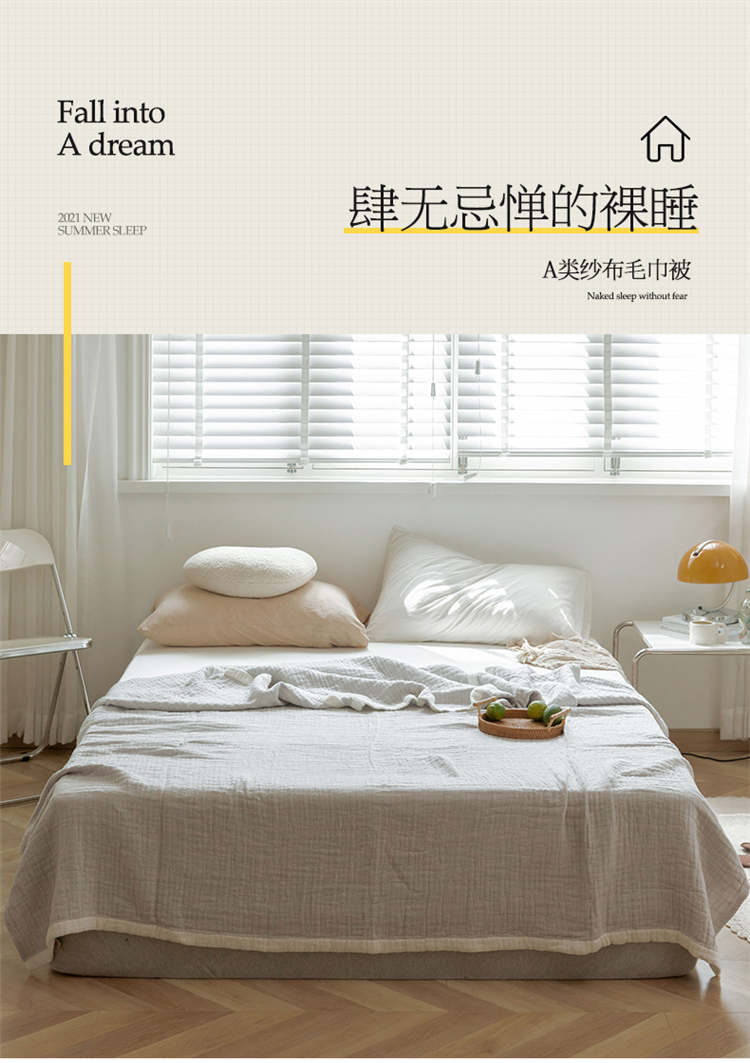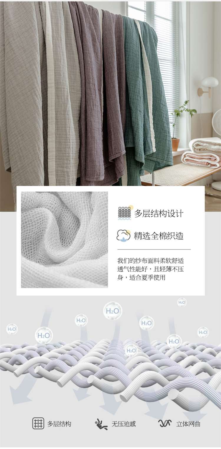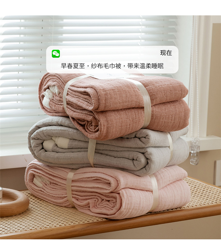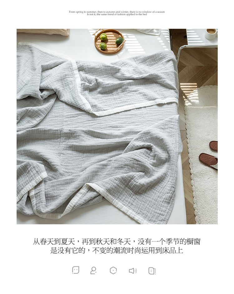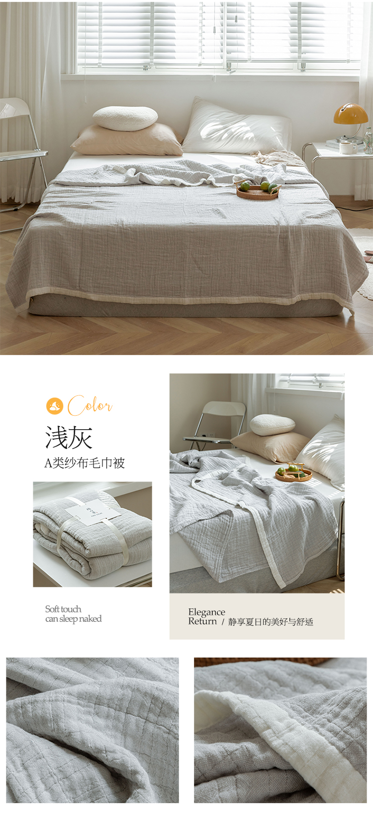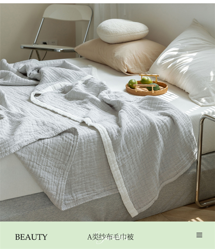雯雨家纺2023新款A类全棉纱布毛巾被 浅灰