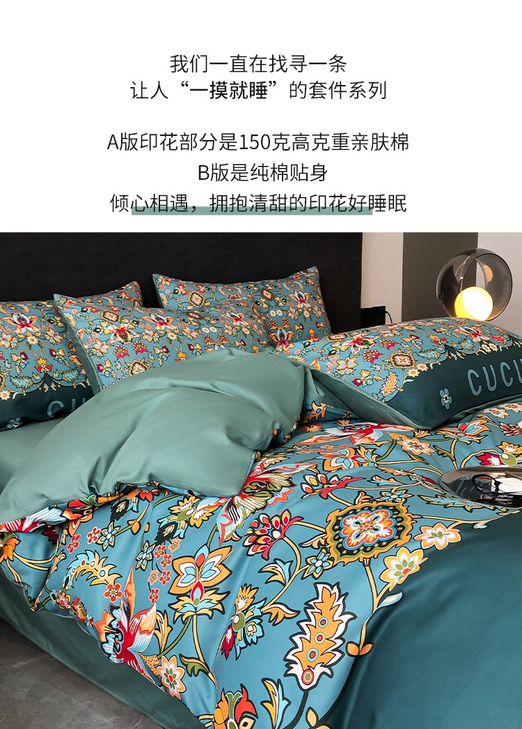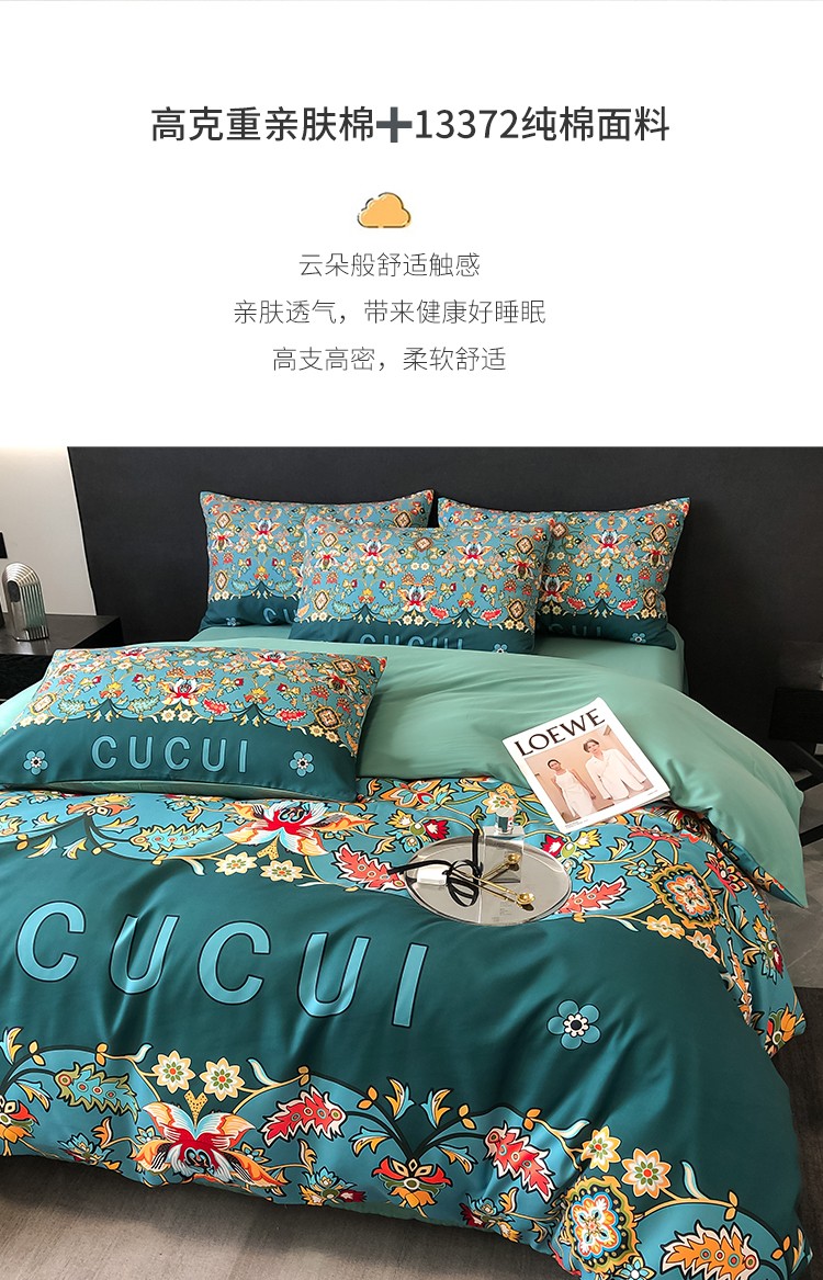 当前位置: 91家纺网 > 商品网购 > 床品套件 > 四件套 > 全棉普通四件套 > 色鬼布艺 2023新款13376纯棉潮牌床单床笠款四件套 轻奢晴茉