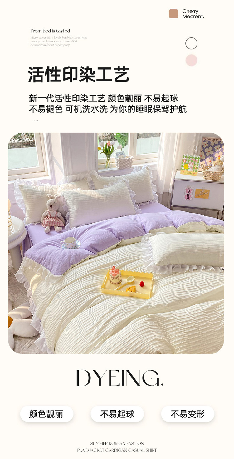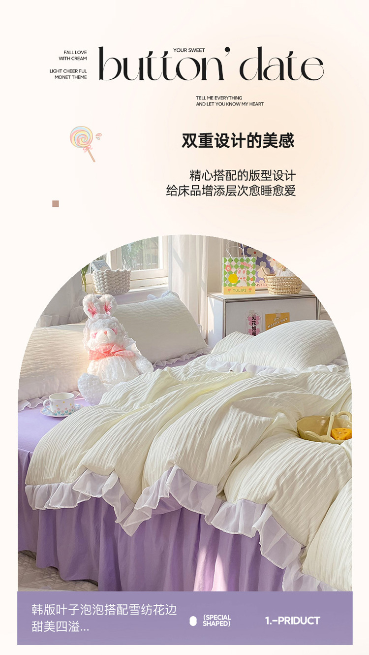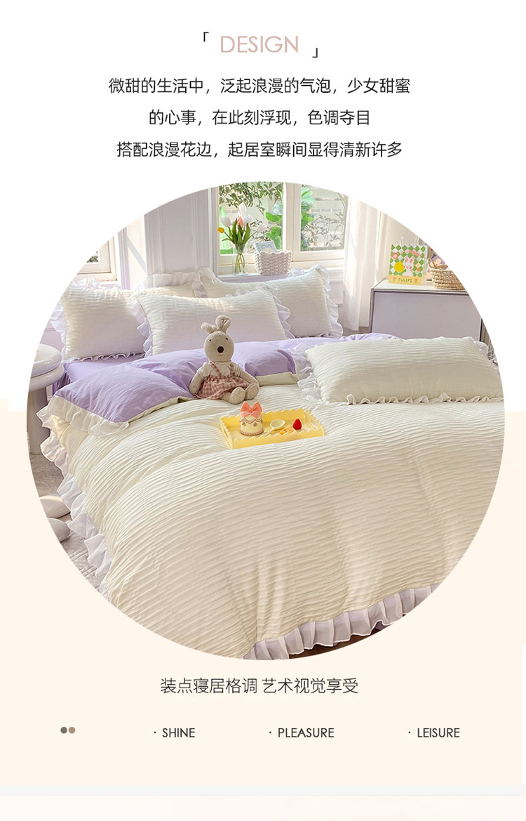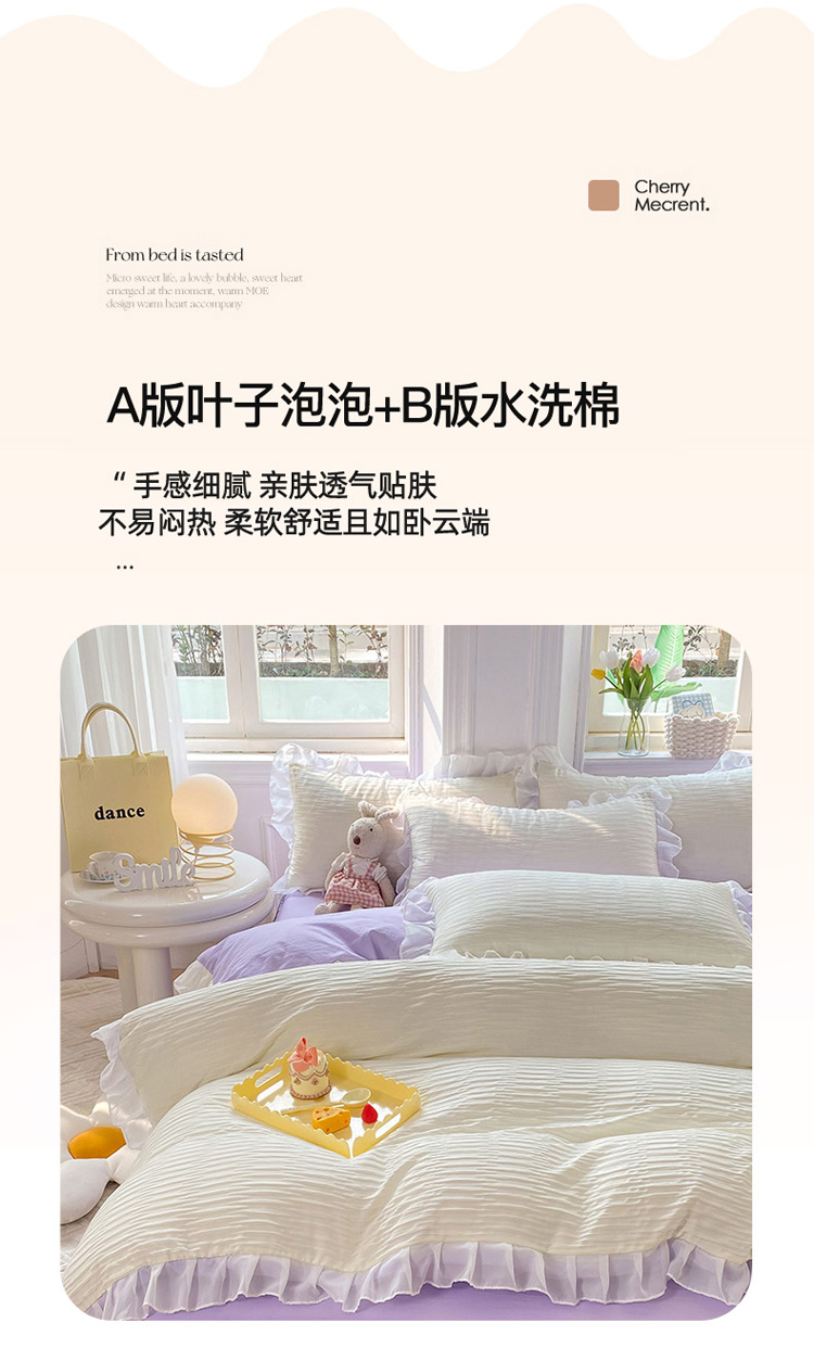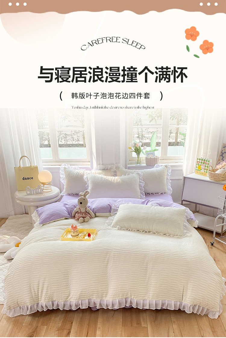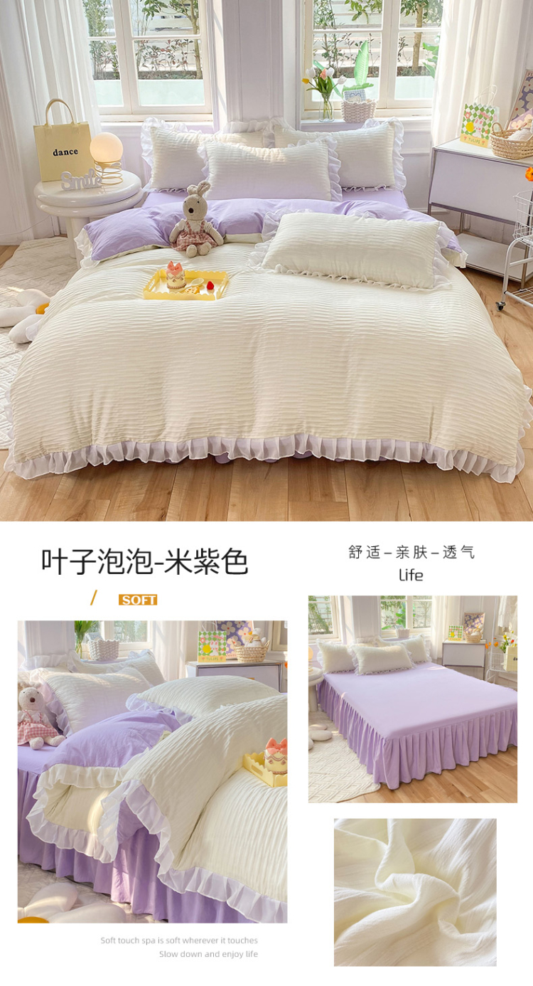 当前位置: 91家纺网 > 商品网购 > 床品套件 > 四件套 > 慕澄 2023新款叶子泡泡雪纺花边系列 叶子泡泡-米紫色
