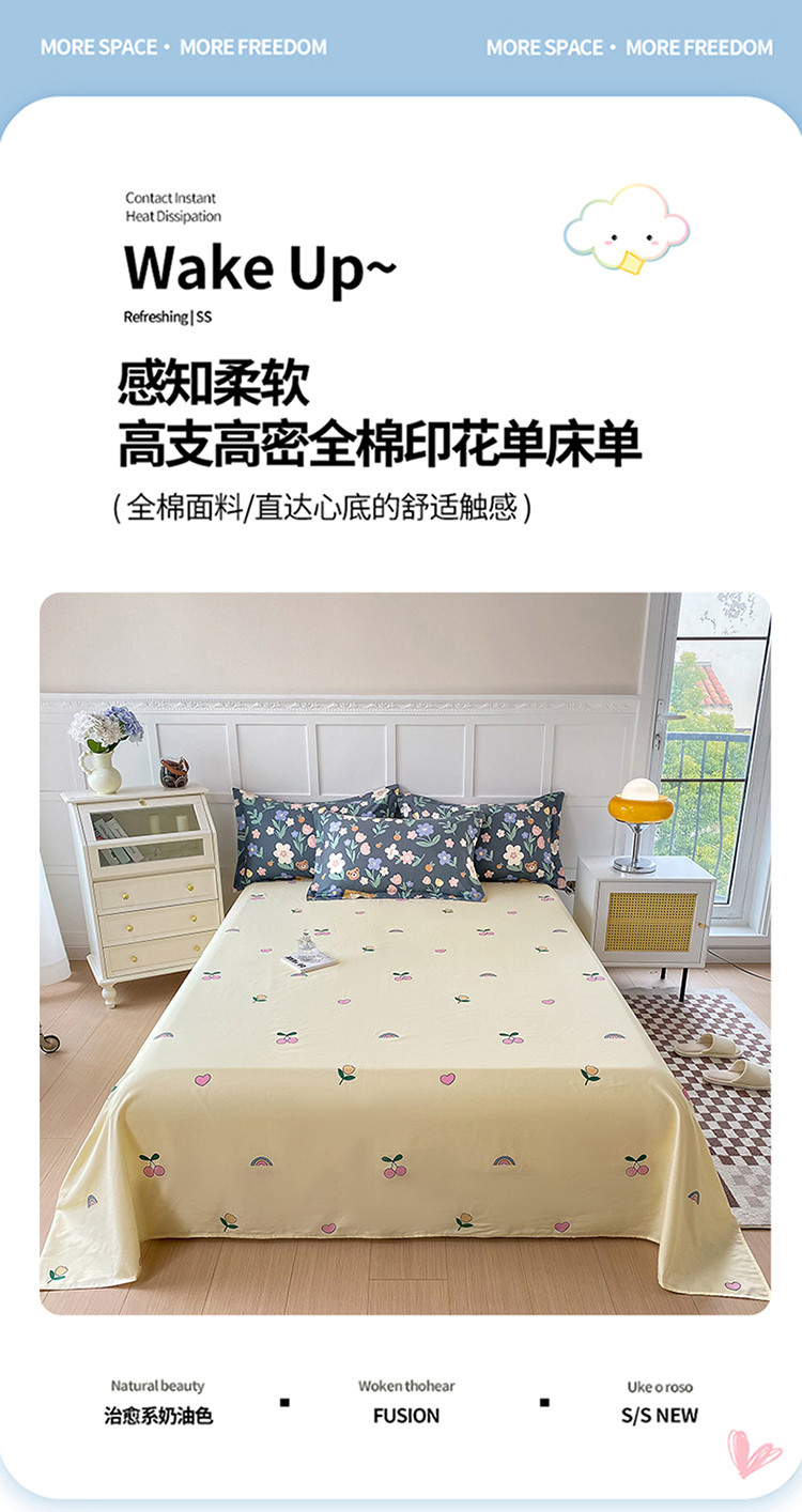 帛织澜 2025新款全棉喷气12868系列纯棉床单 浪漫花枝