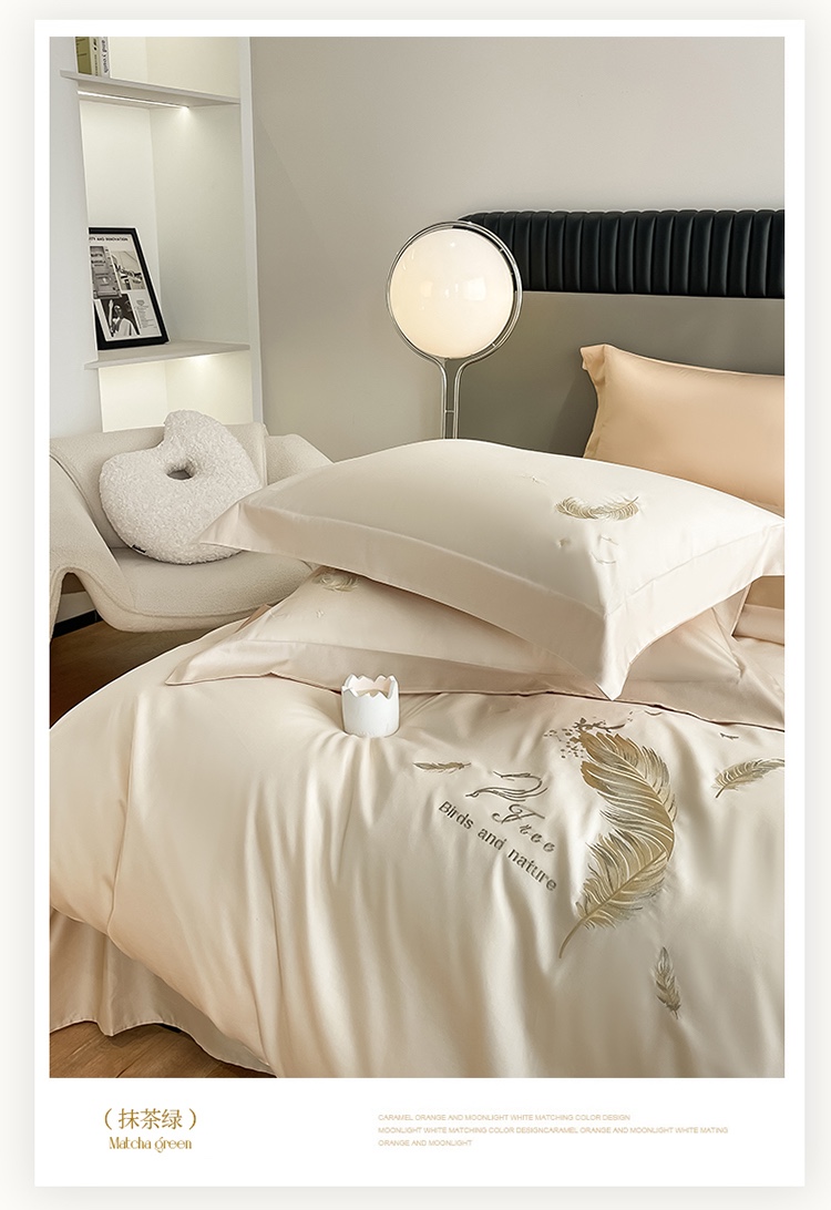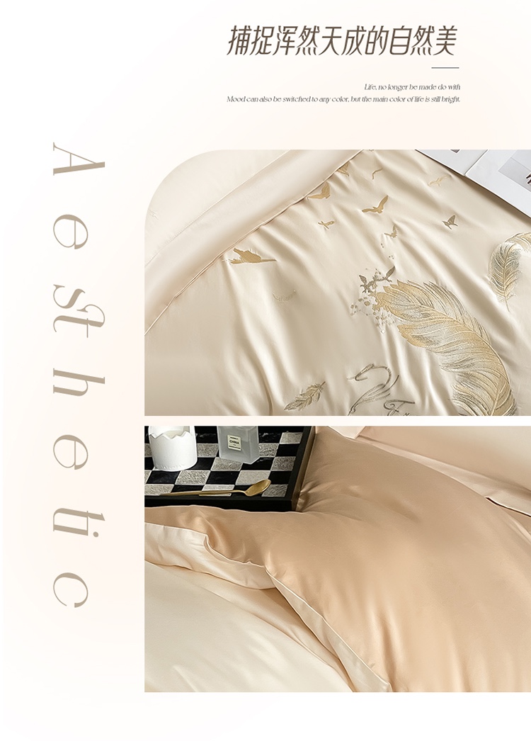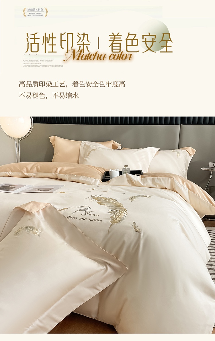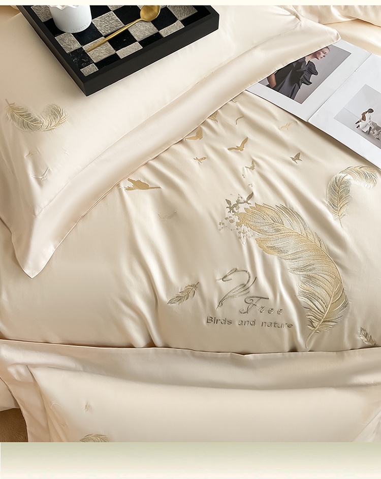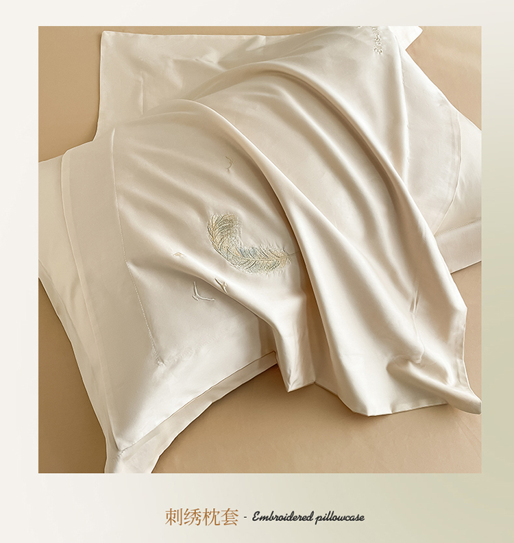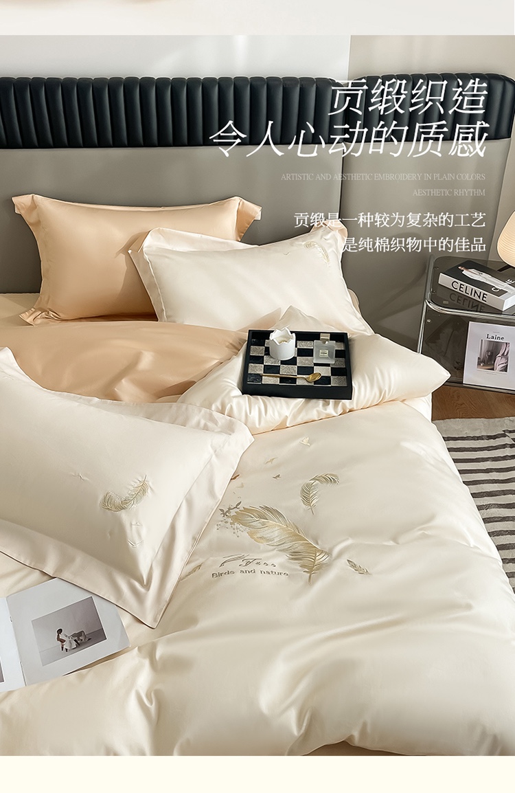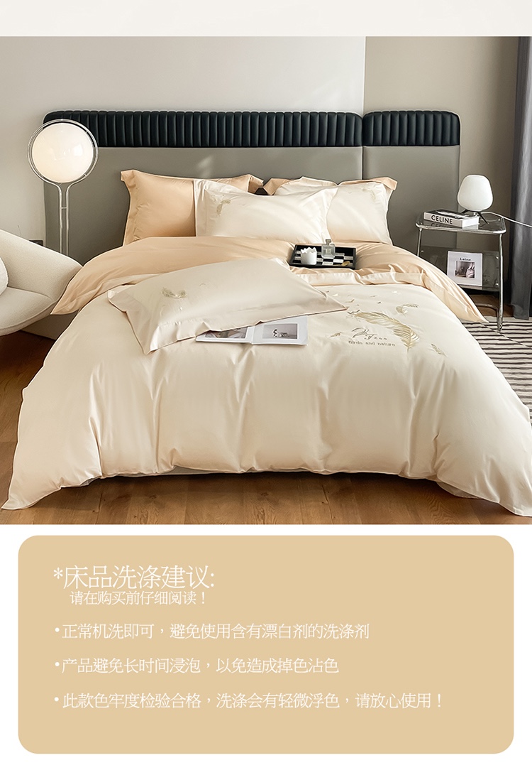 商品名称:蓝米卡夫 2024全棉高级感长绒棉刺绣兰羽系列-单被套 兰羽-奶昔香槟
