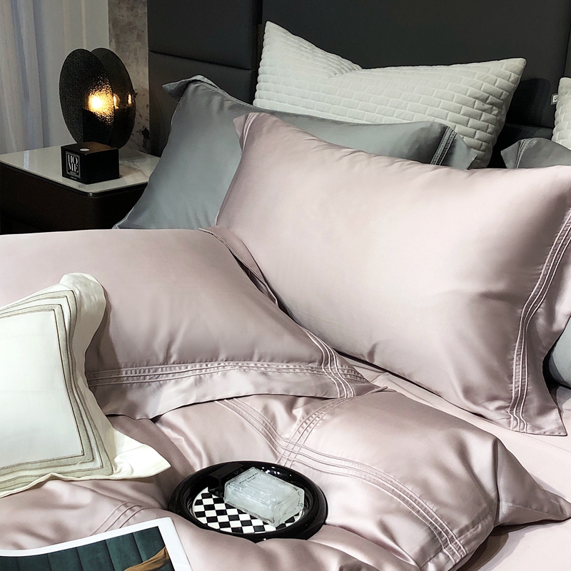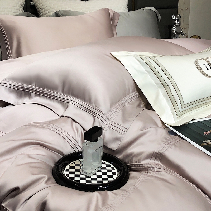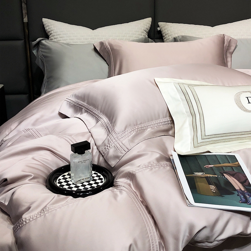 商品名称:涞澳 2023新款60支纯色天丝压线系列四件套--云汐系列 云汐-烟粉