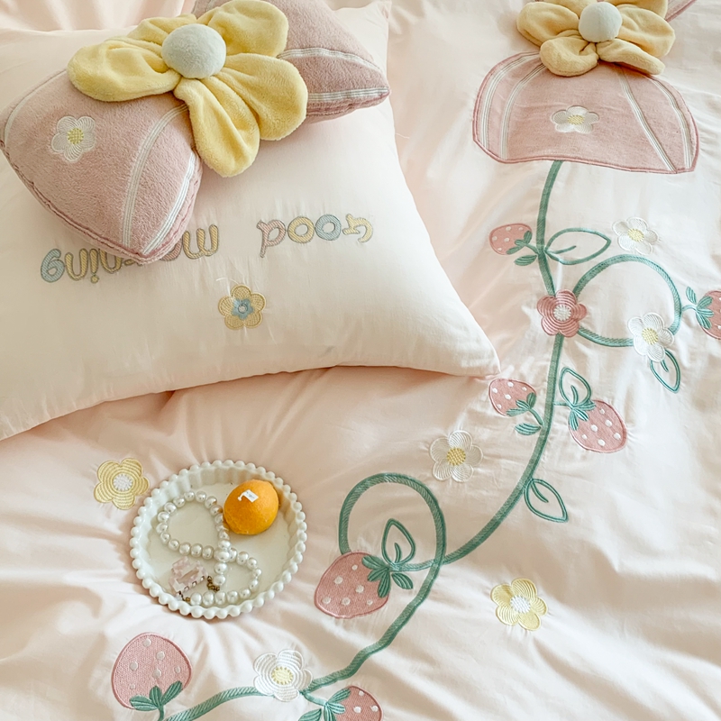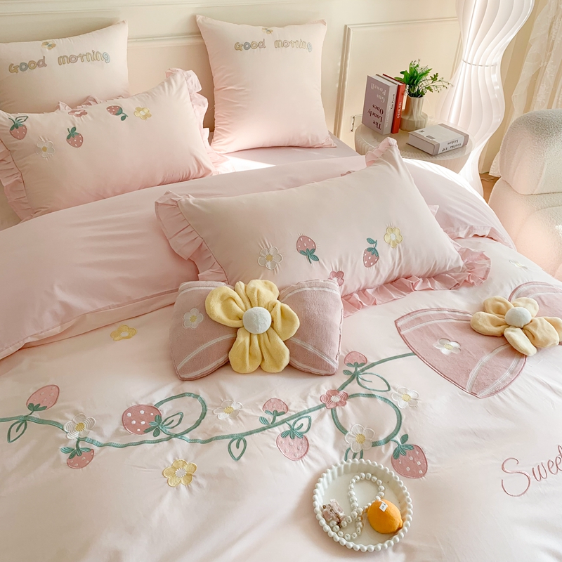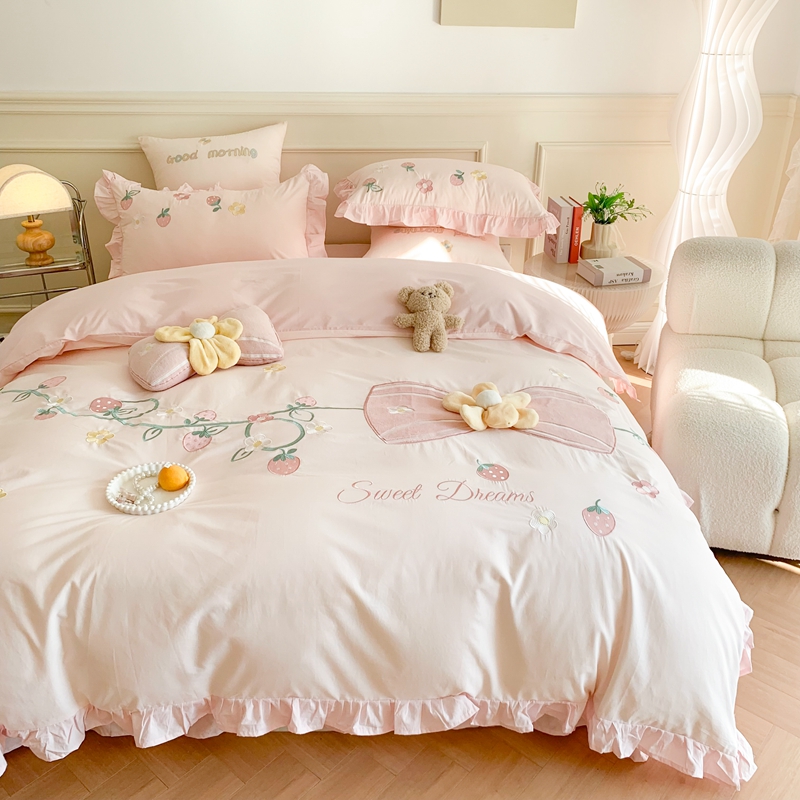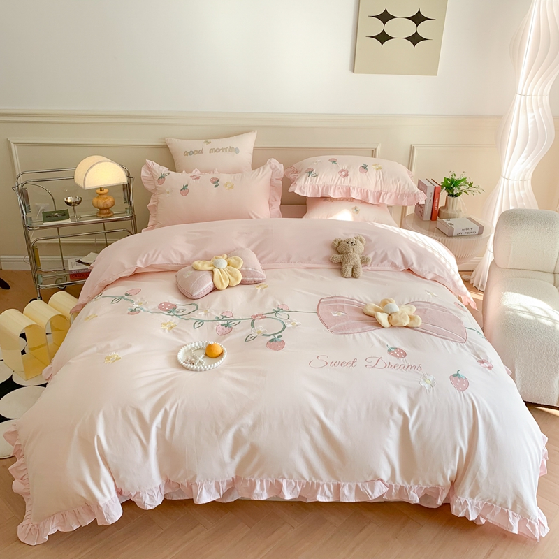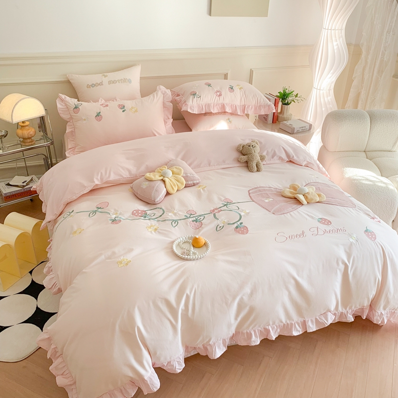 (总)曼布缇 2025新款A类60s全棉水洗棉绣花四件套-草莓