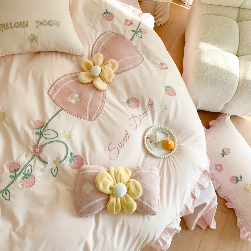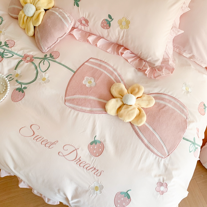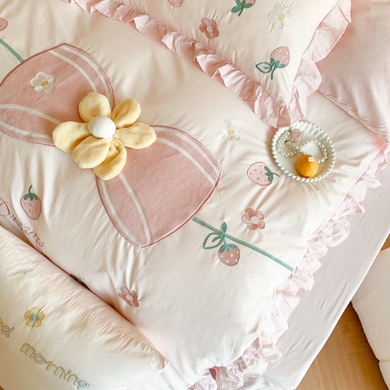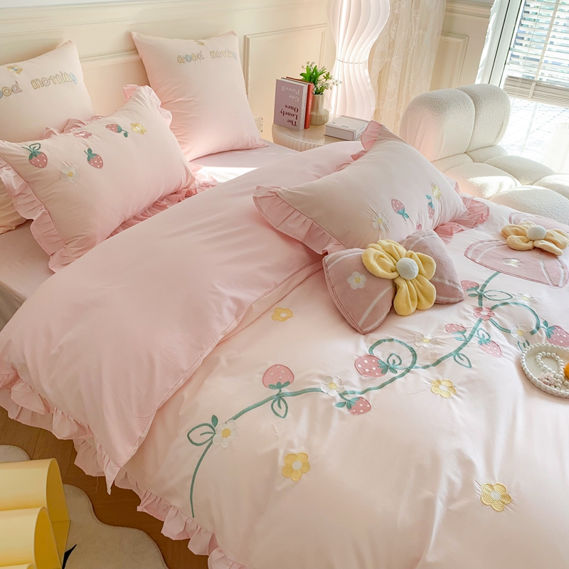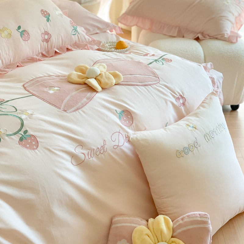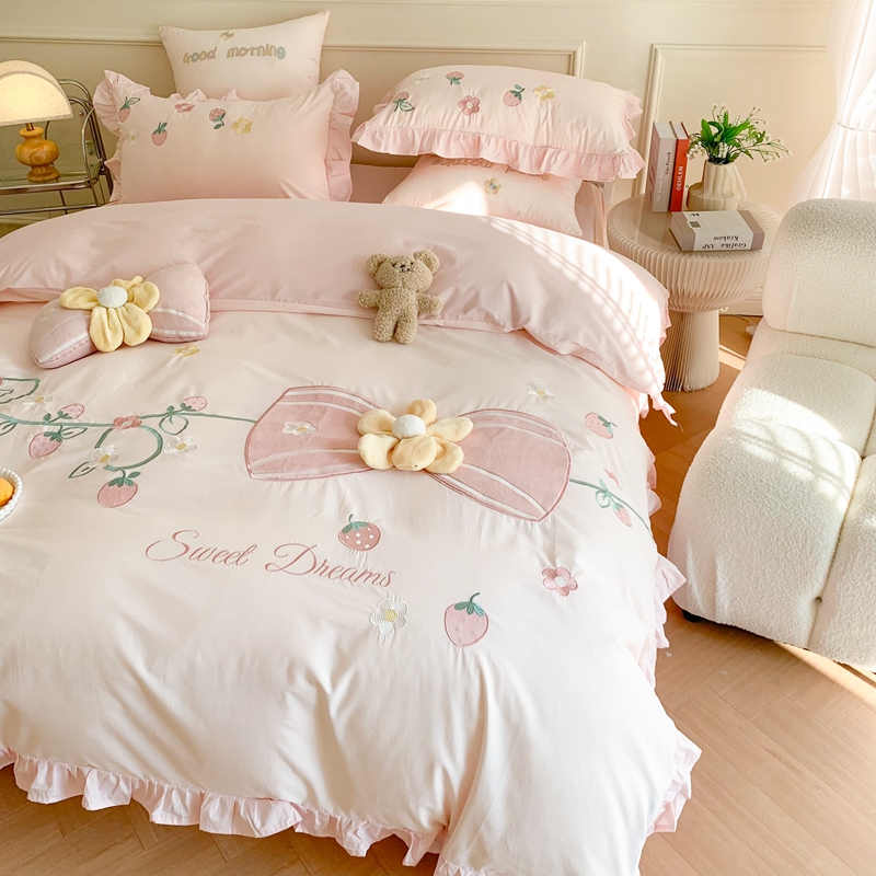 (总)曼布缇 2025新款A类60s全棉水洗棉绣花四件套-草莓