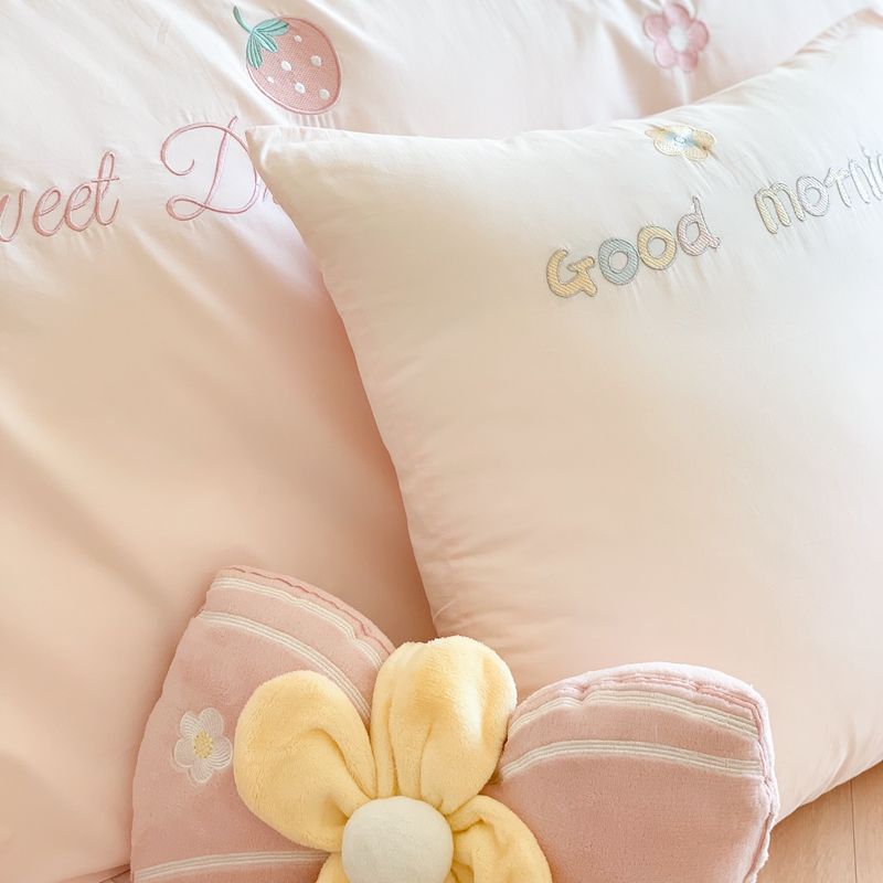 商品名称:(总)曼布缇 2025新款A类60s全棉水洗棉绣花四件套-草莓