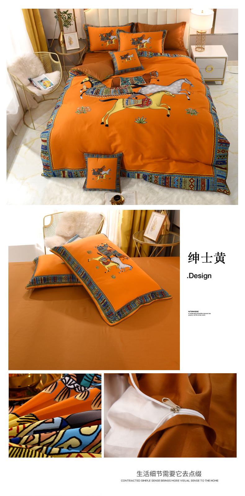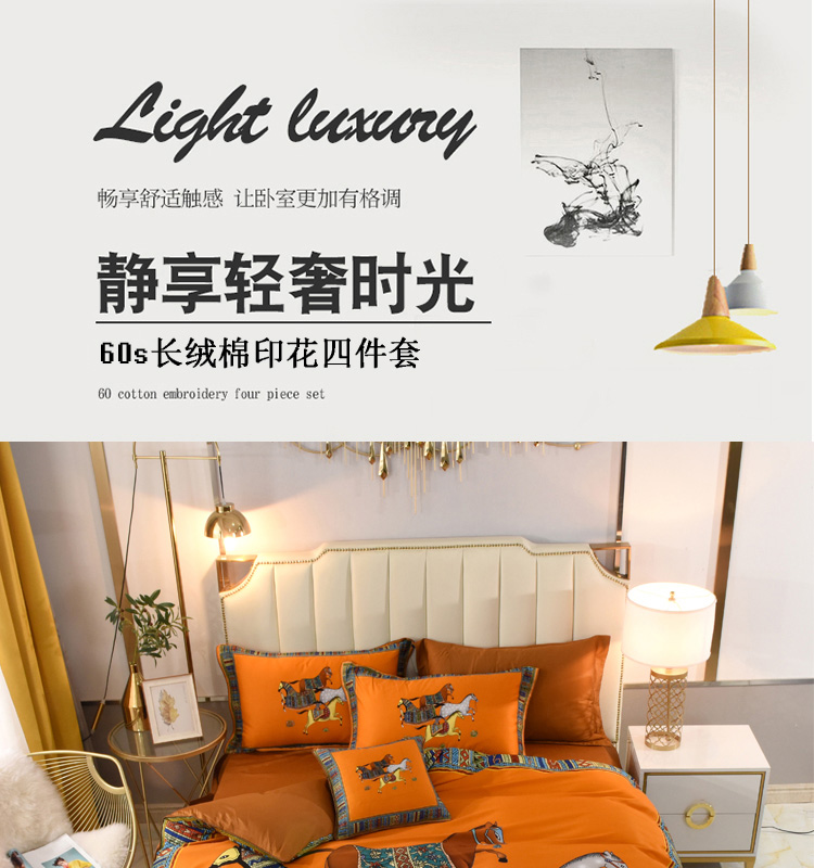 (总)爵仕2025新款高端100支臻品奢华长绒棉四件套,豹纹金,皇家马,皇家马鞍,经典马,罗盘,群马黄