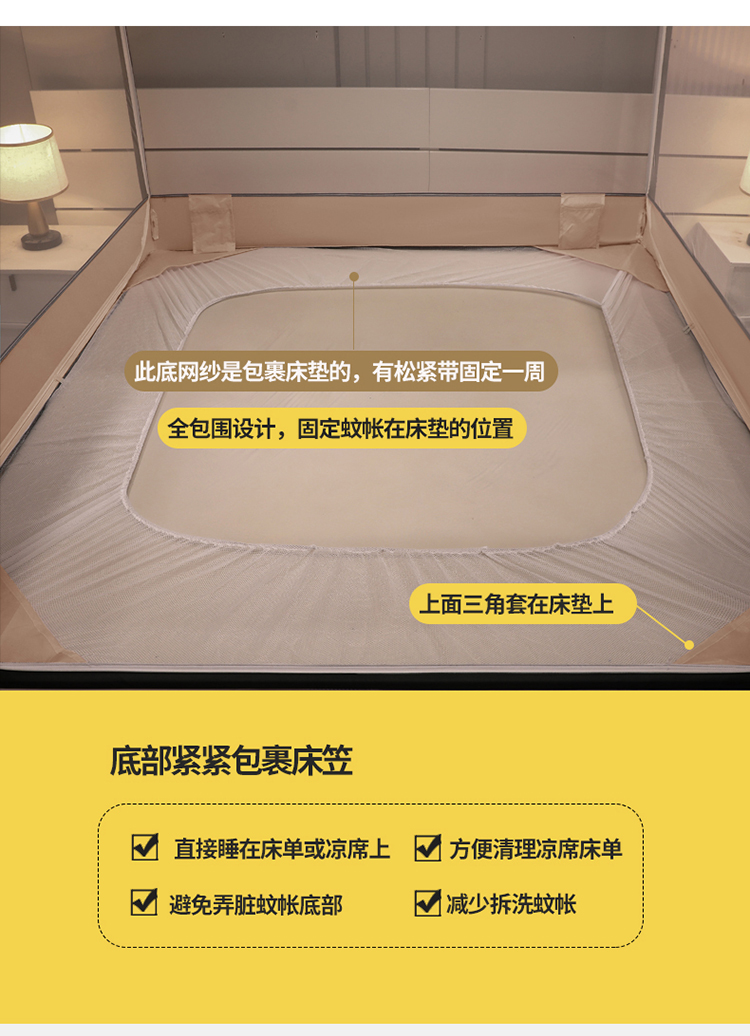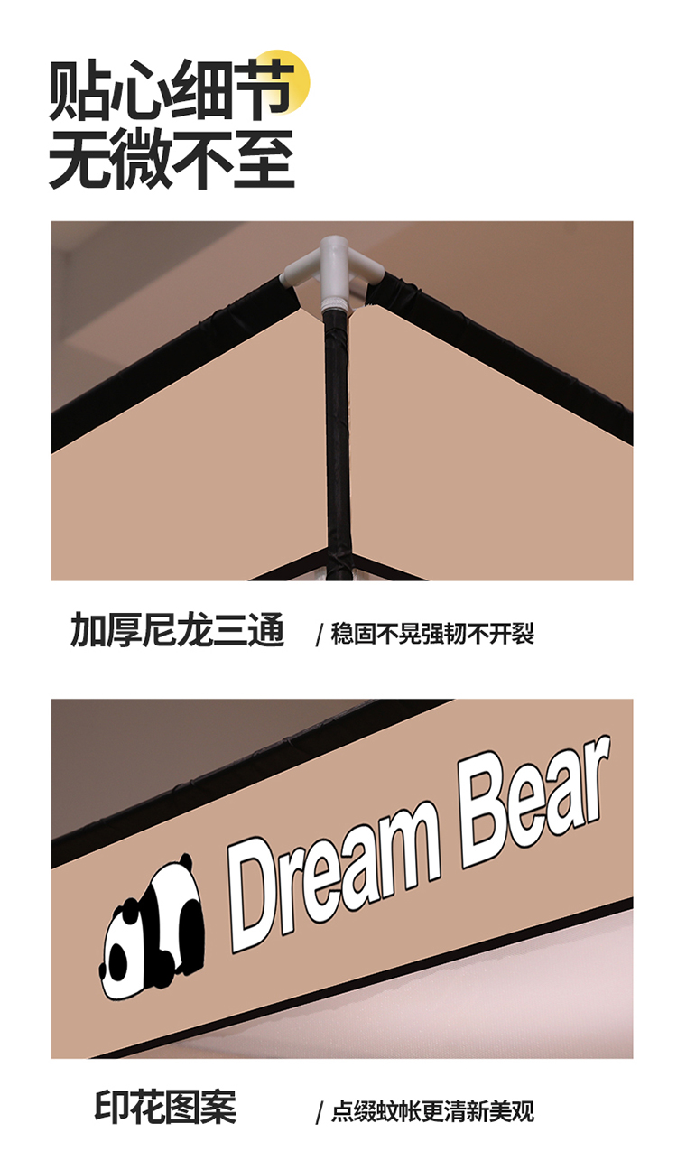 商品名称:宅部落2023年床笠款防摔坐立蚊帐 大熊猫-卡其色