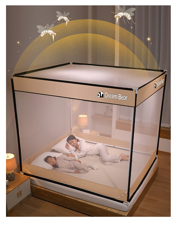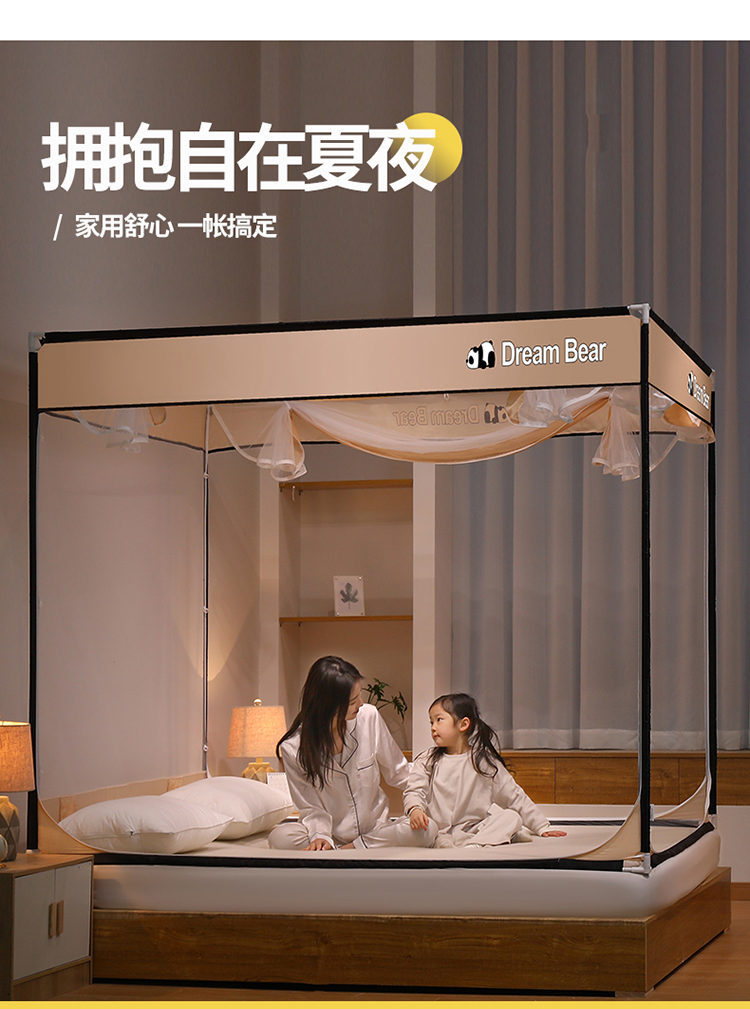 宅部落2023年床笠款防摔坐立蚊帐 大熊猫-卡其色