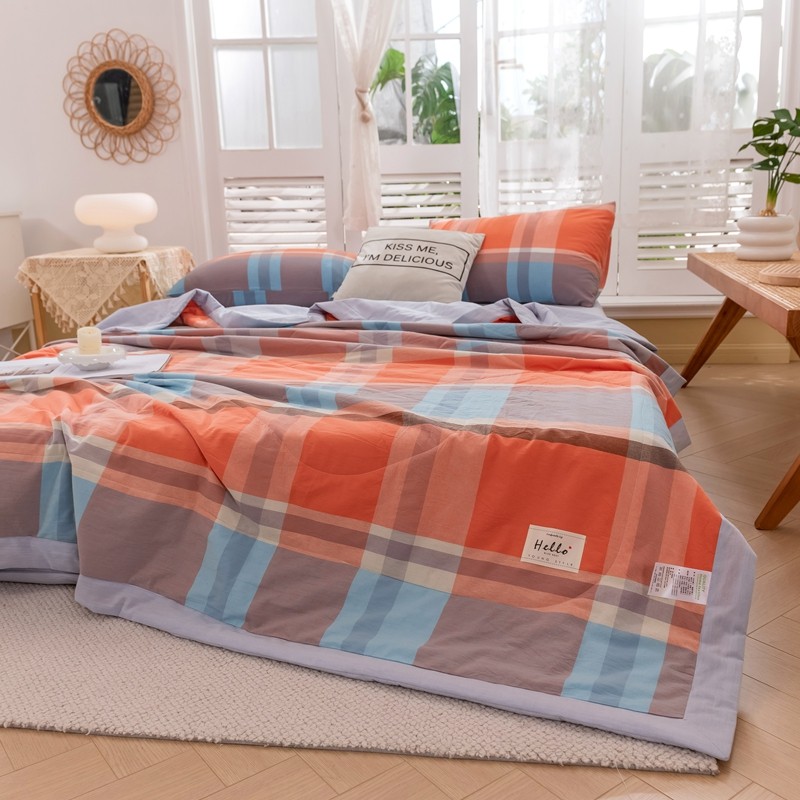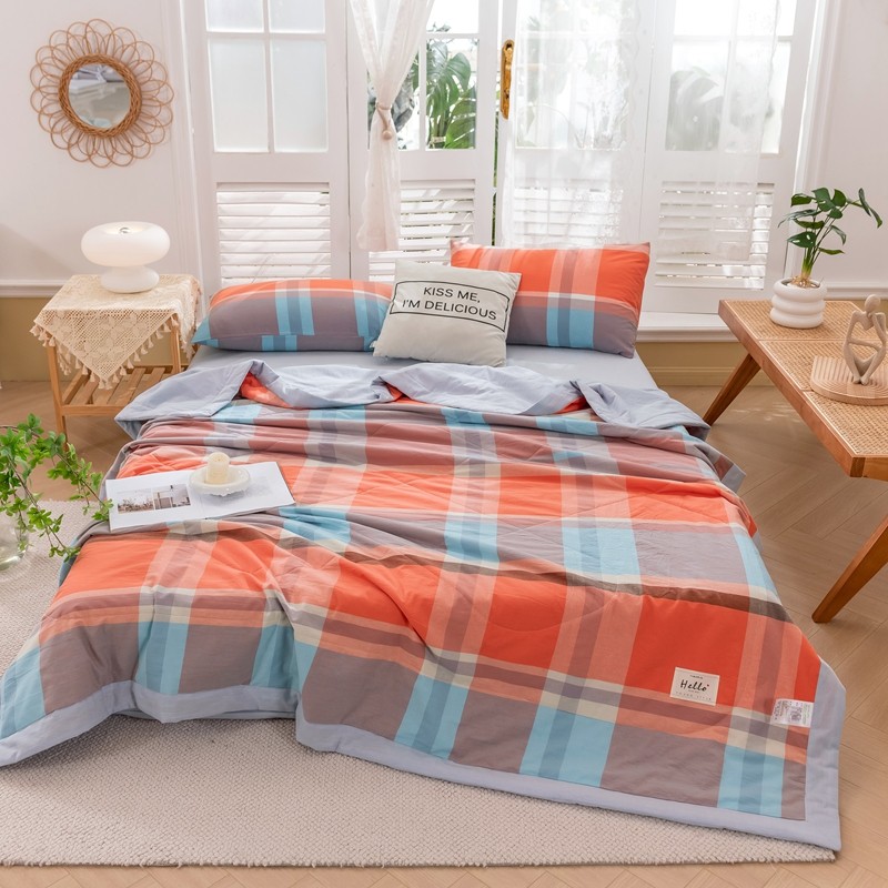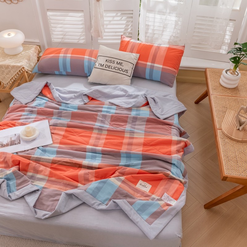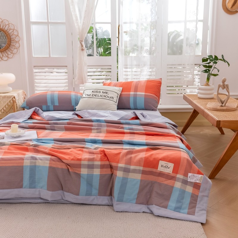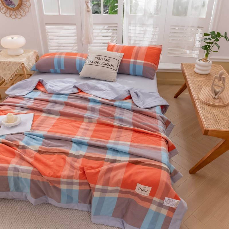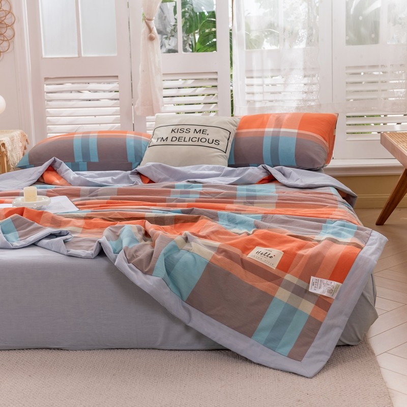 商品名称:简色坊 2023新款水洗棉夏被 橘大格