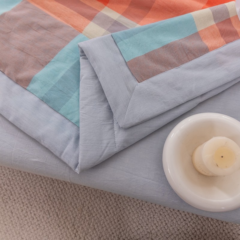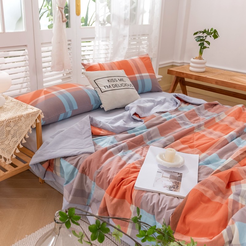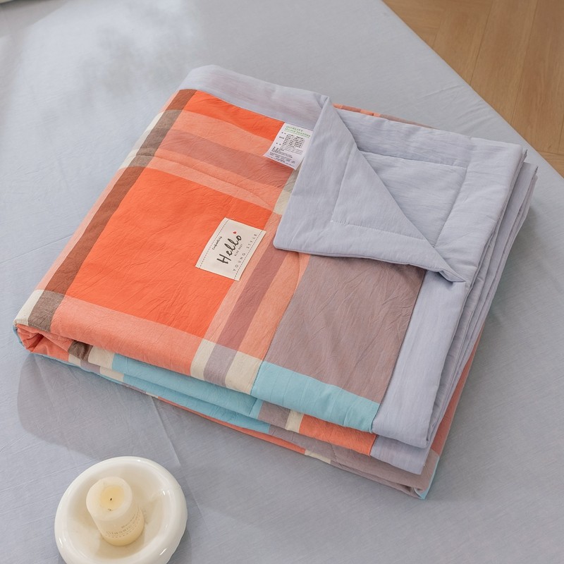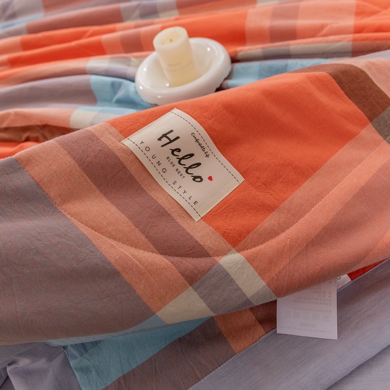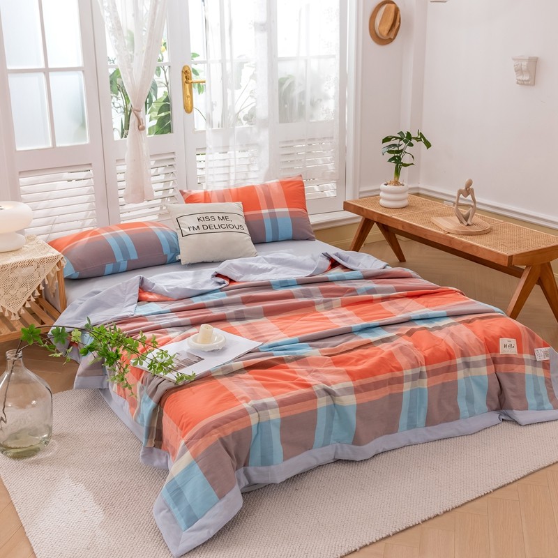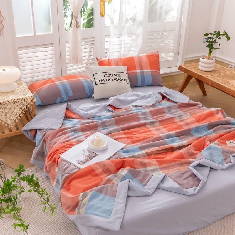 商品名称:简色坊 2023新款水洗棉夏被 橘大格