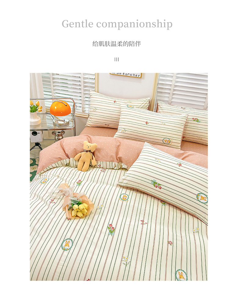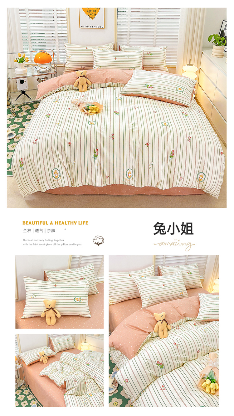 商品名称:捌月 2023新款13372全棉四件套竖纹印花系列 兔小姐