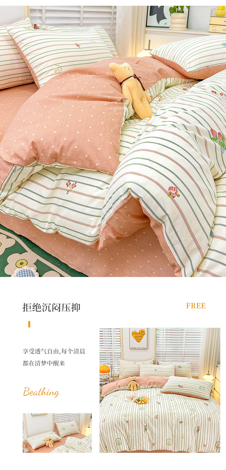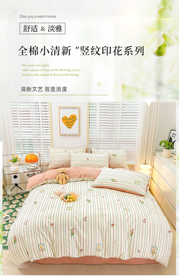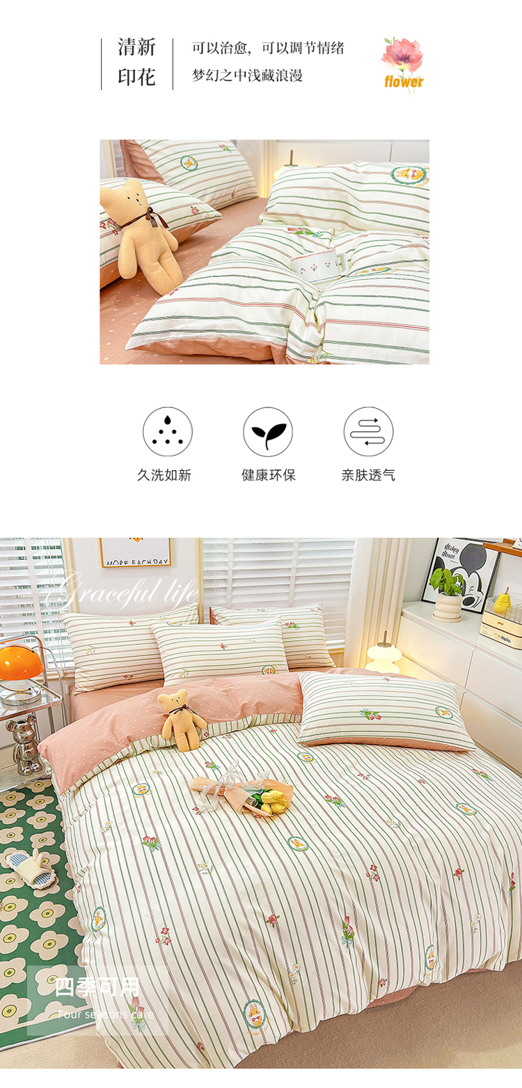 (总)捌月 2023新款13372全棉四件套竖纹印花系列,草莓园,兔小姐,小兰花,小甜心