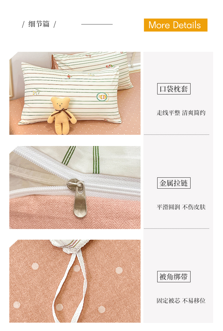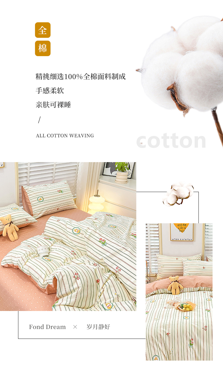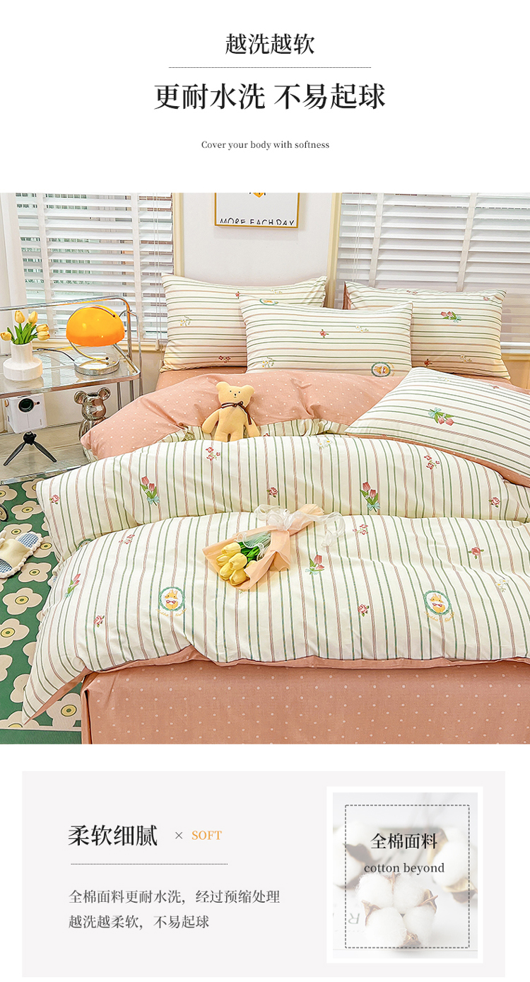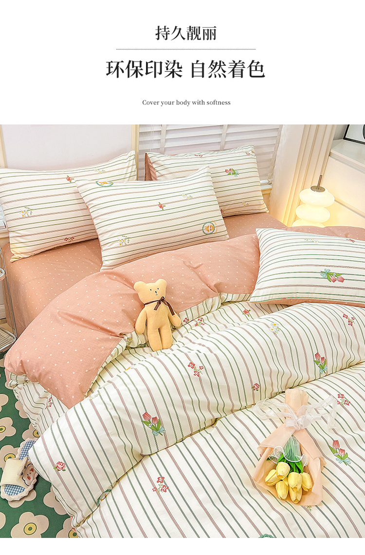 (总)捌月 2023新款13372全棉四件套竖纹印花系列,草莓园,兔小姐,小兰花,小甜心
