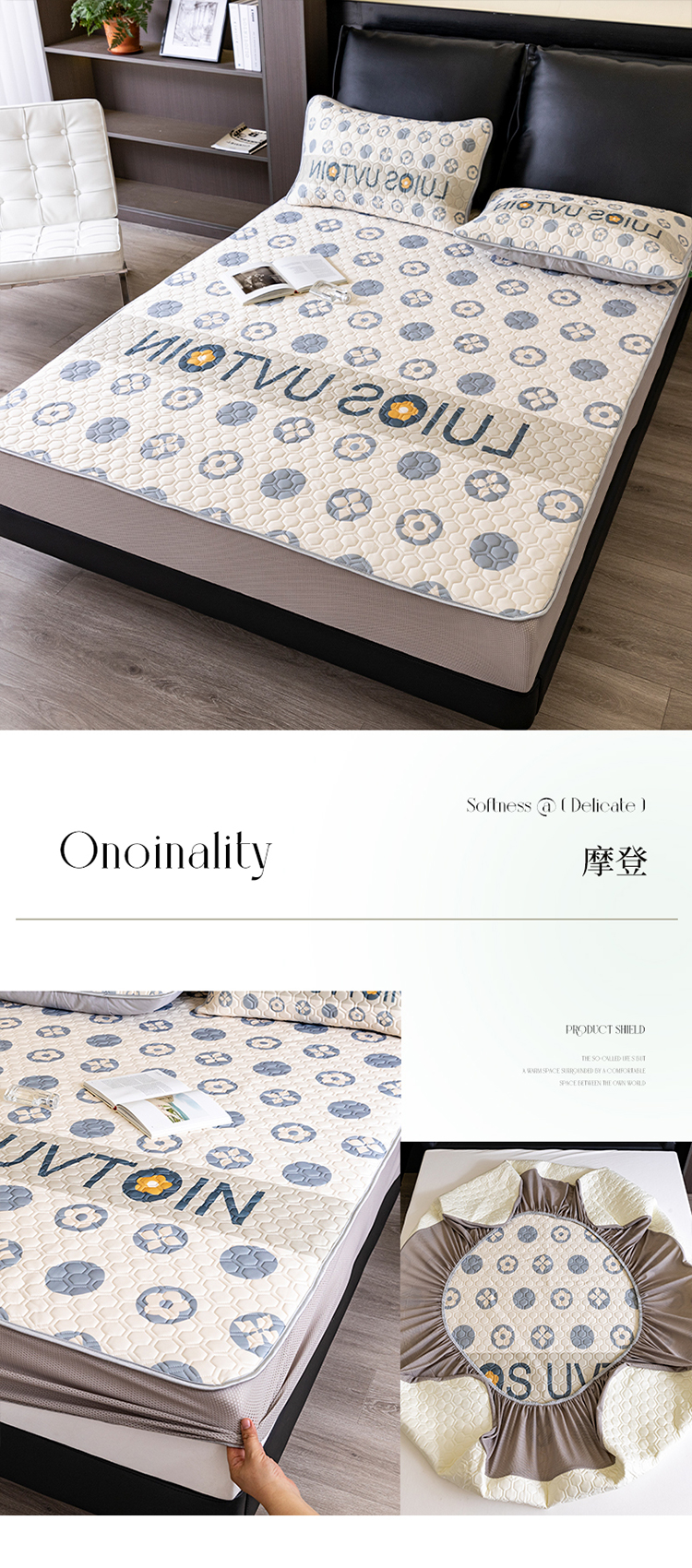 摩卡 2024新品凉感丝床笠乳胶凉席三件套 摩登
