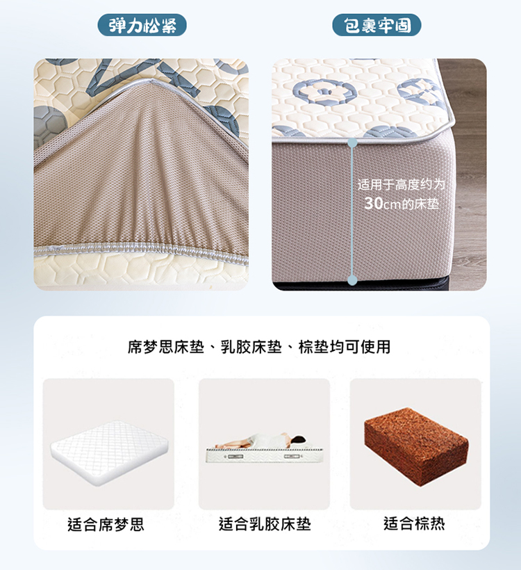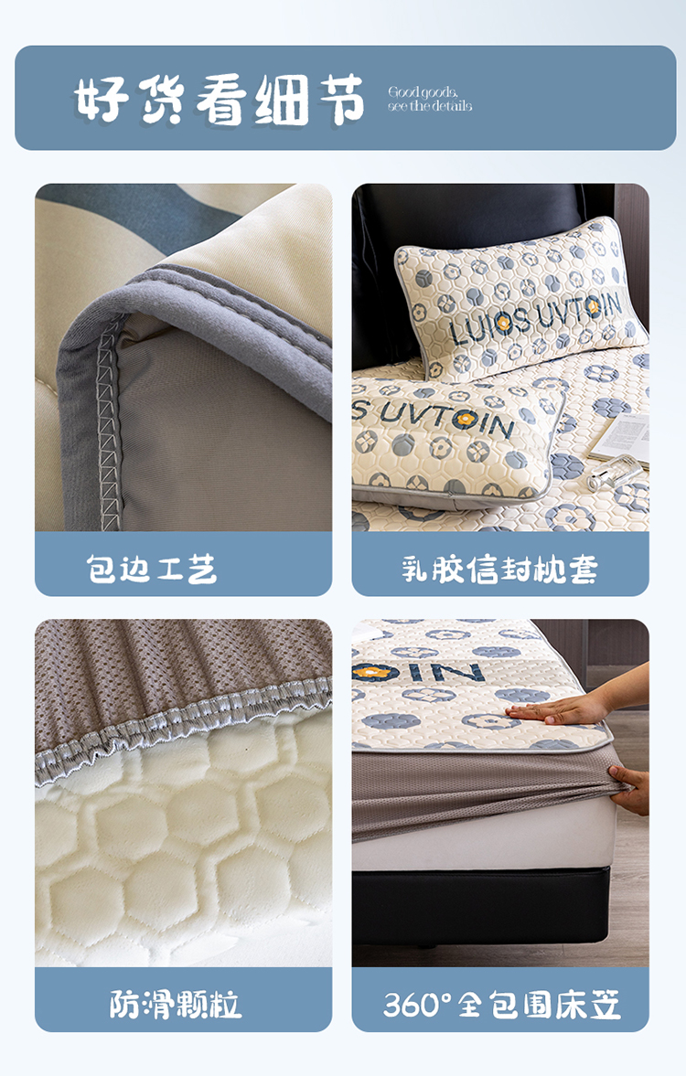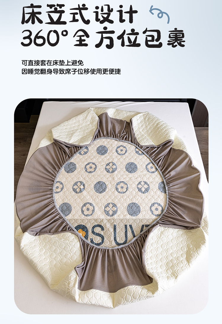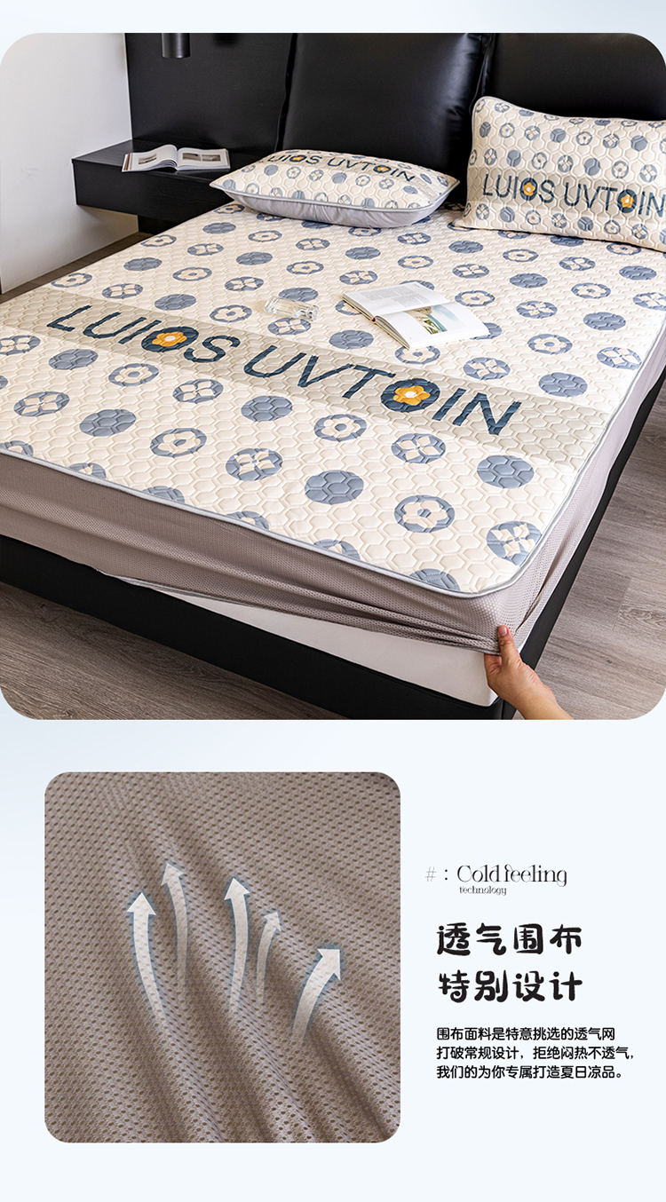 商品名称:摩卡 2024新品凉感丝床笠乳胶凉席三件套 摩登