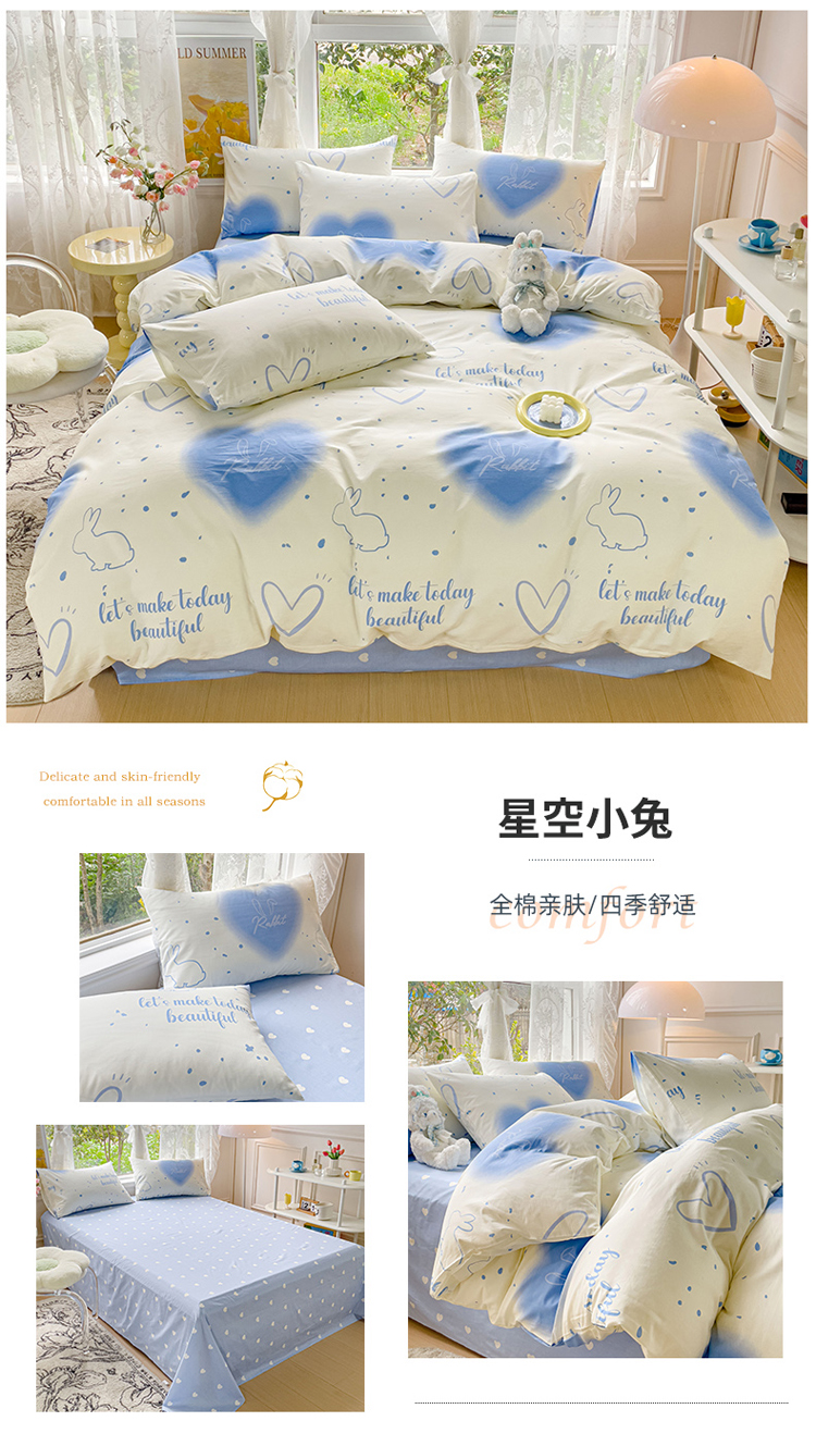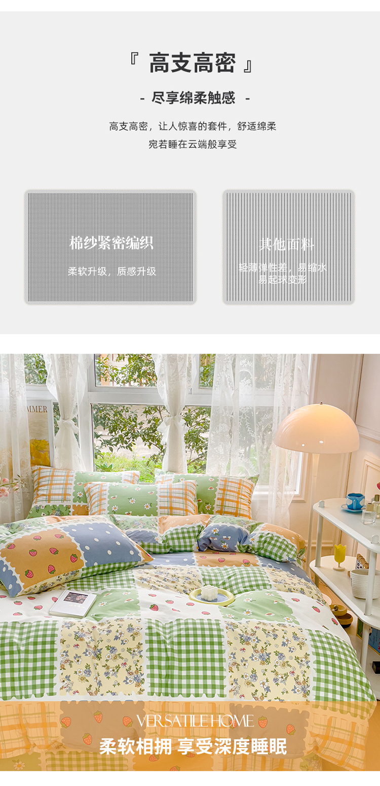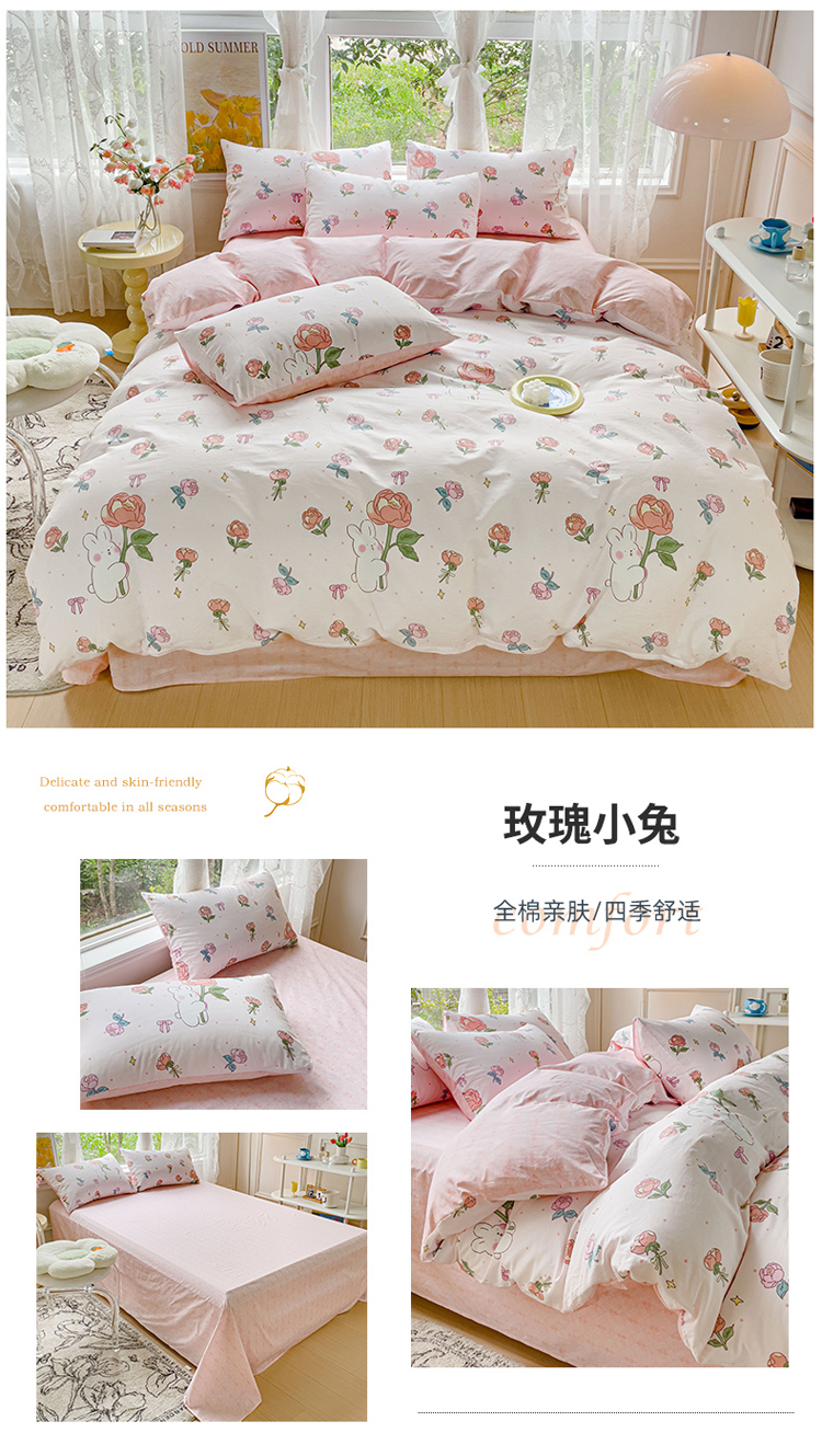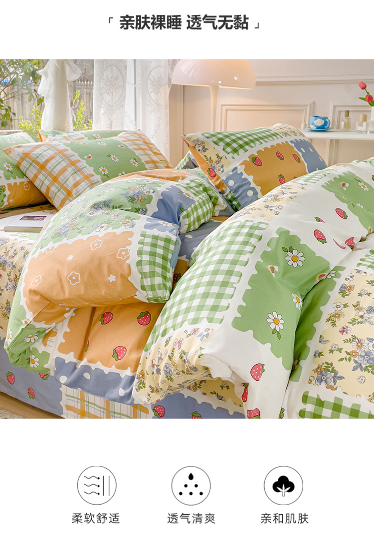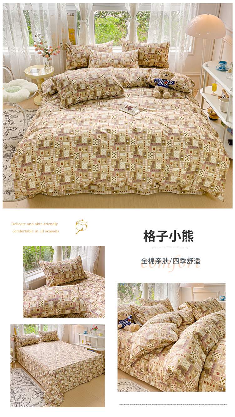 (总)感遇家纺 2025新款小清新甜系全棉四件套,百丽兔,波点小女孩,点点小狗,复古樱桃,格子草莓,格子樱桃,花间牧歌,灰条猫咪,奶绿,宁夏,森林小熊猫,甜心波点