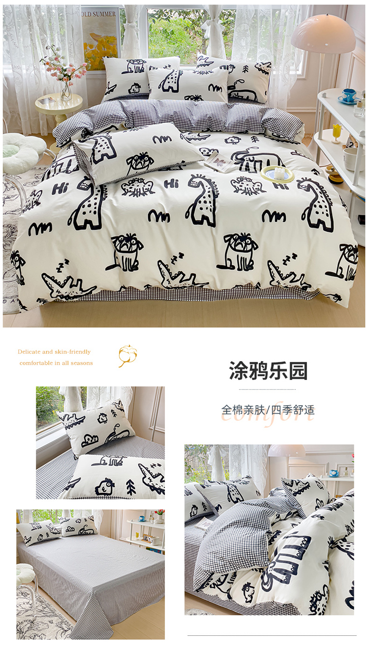(总)感遇家纺 2021新款小清新卡通系列四件套,饼干森林,快乐星球,长颈鹿