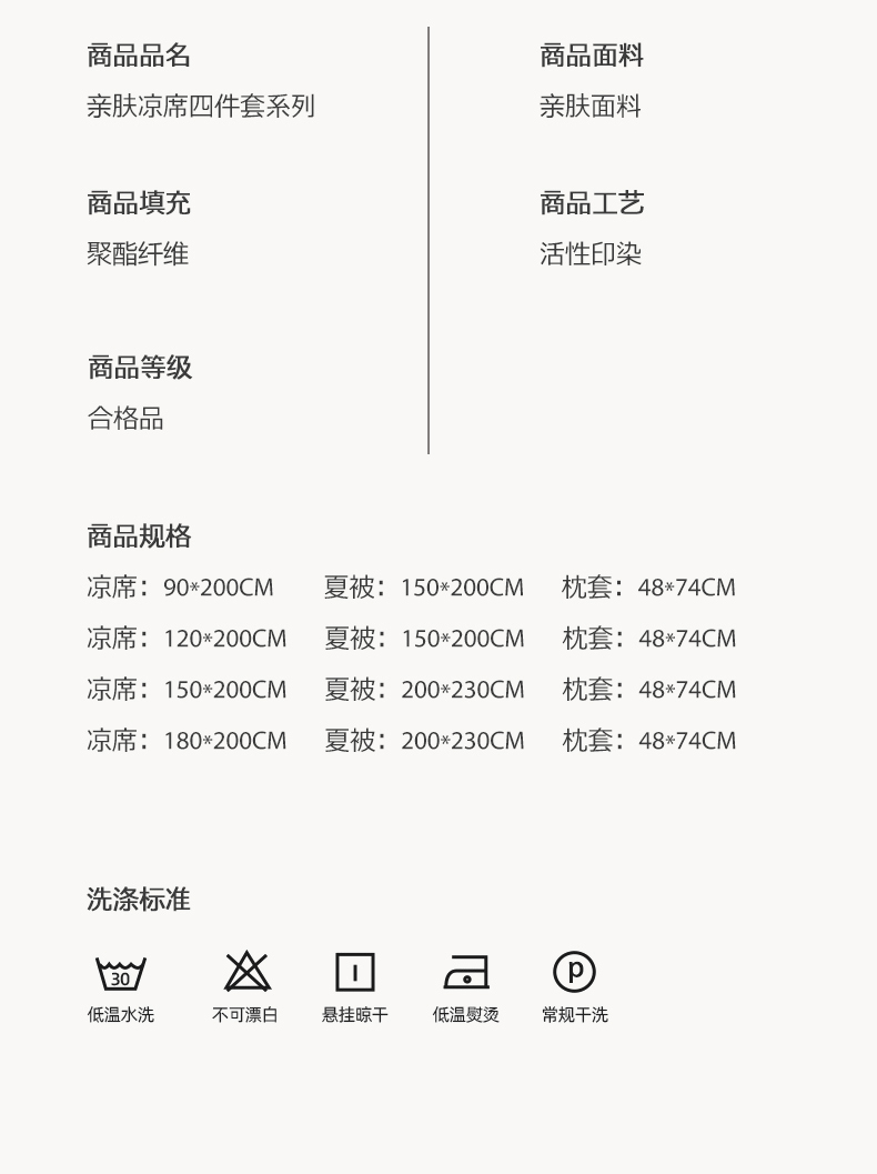 四件套(凉席: 180*200+夏被: 200*230)