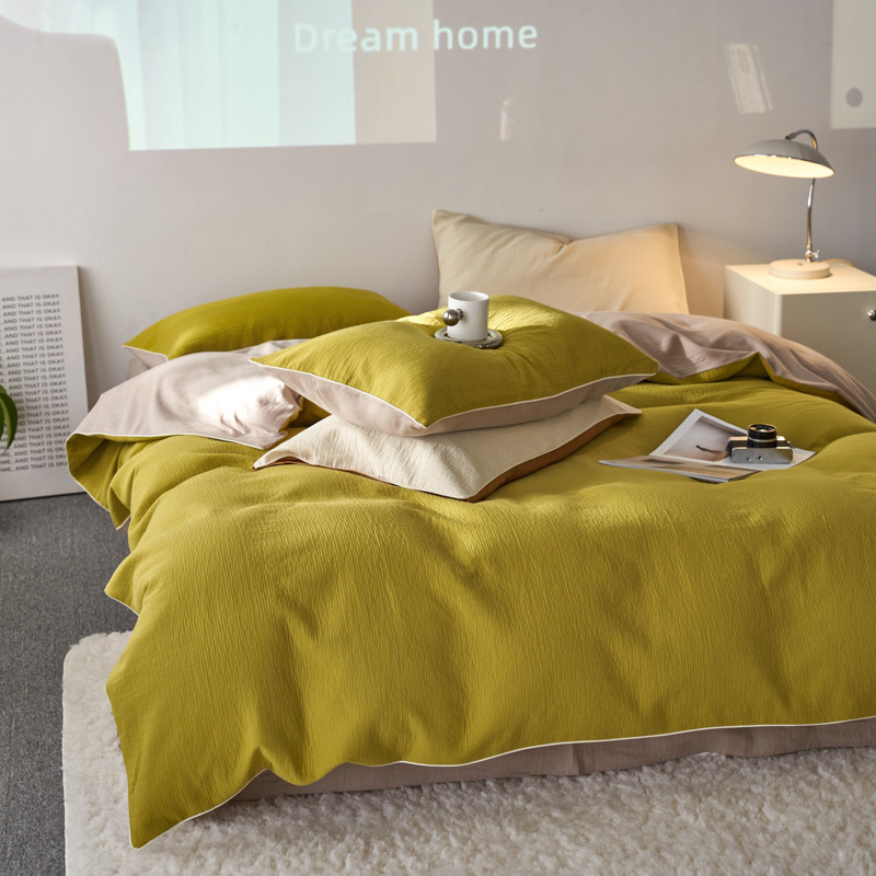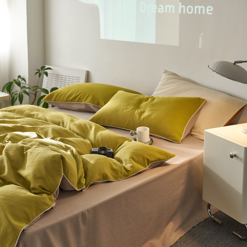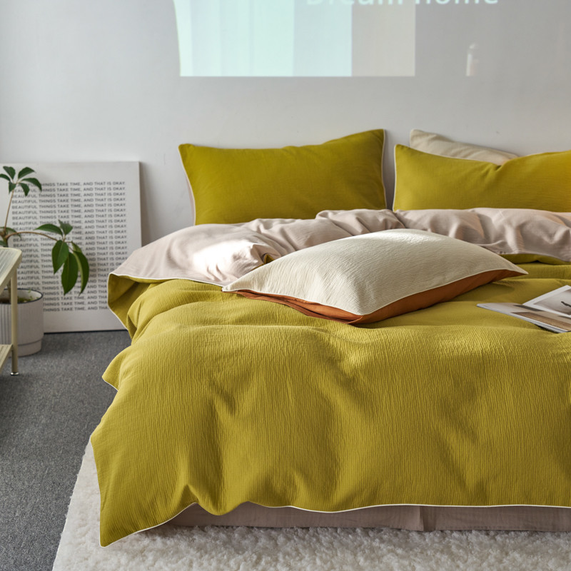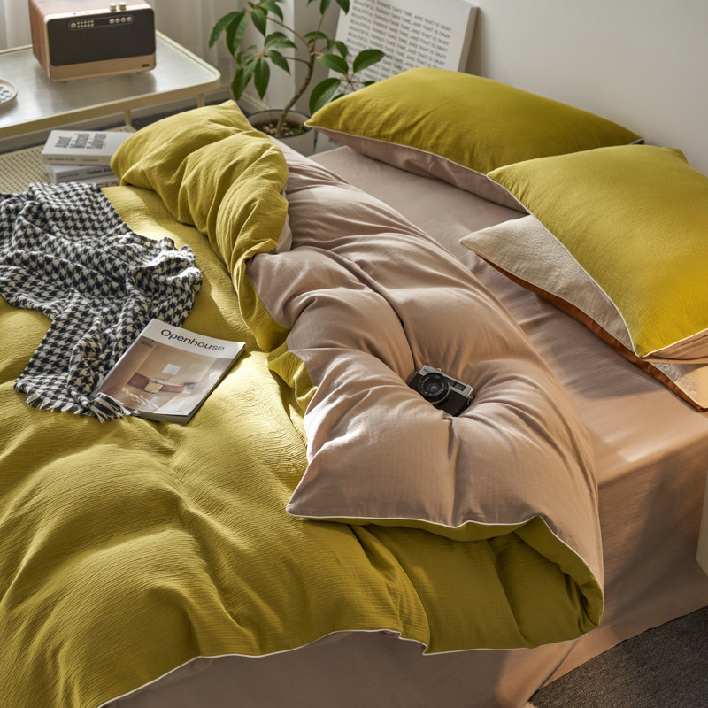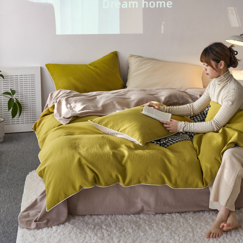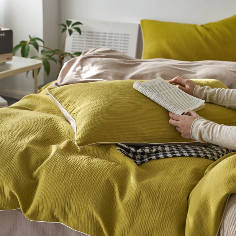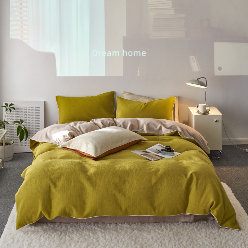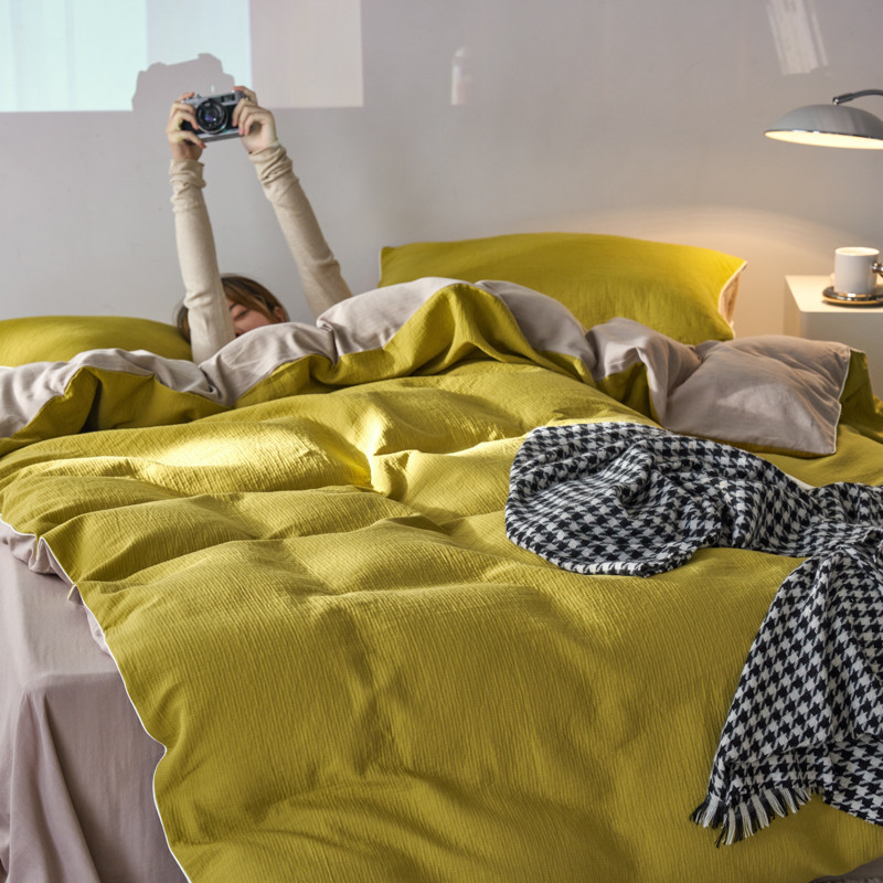 商品名称:简家居 2023新款全棉三层纱四件套 杏黄