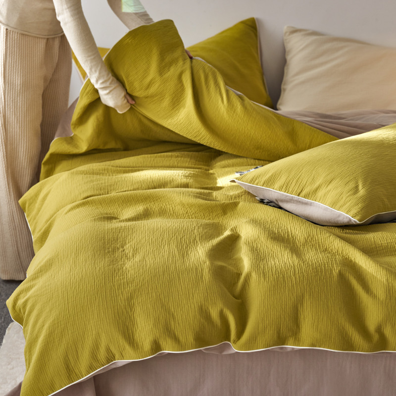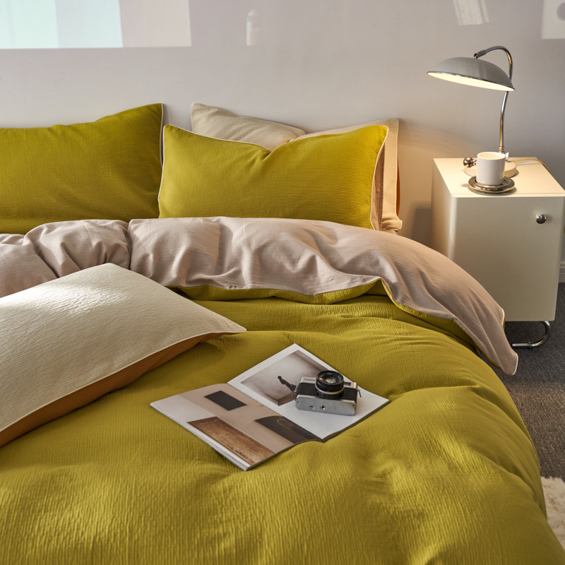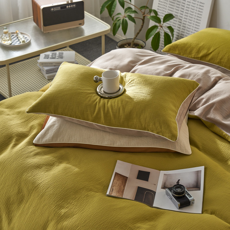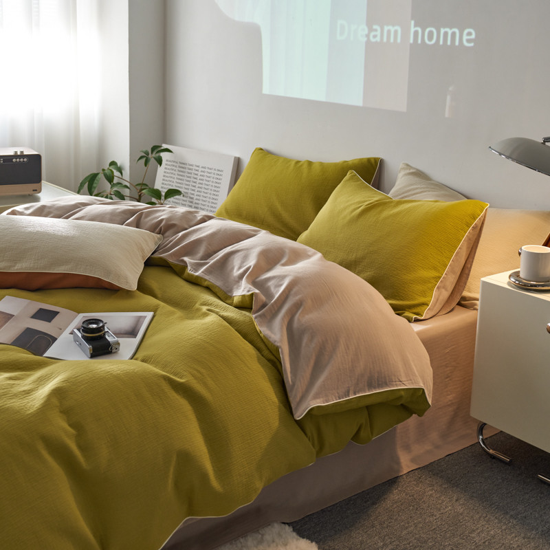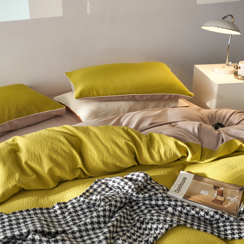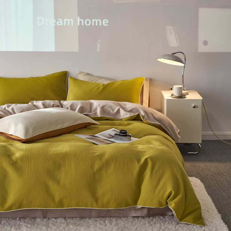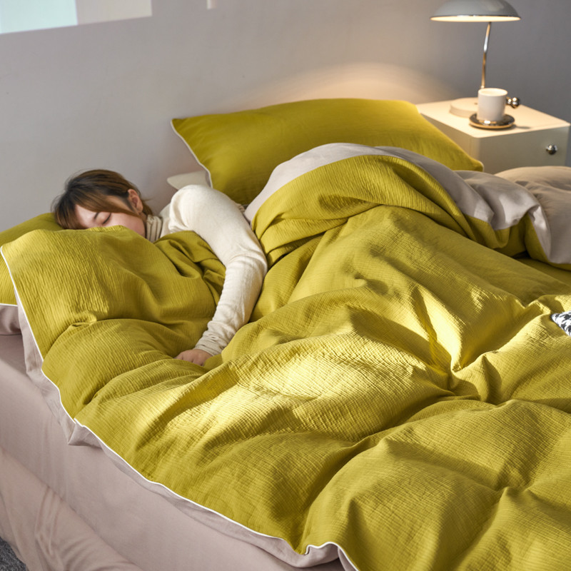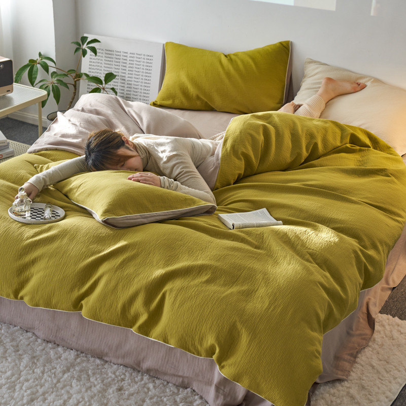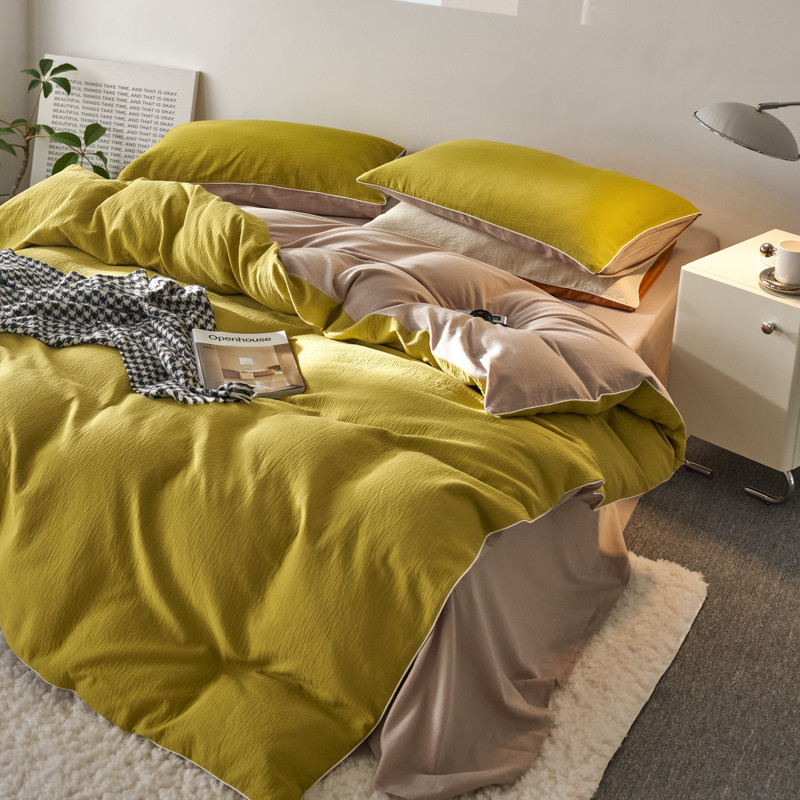 商品名称:简家居 2023新款全棉三层纱四件套 杏黄