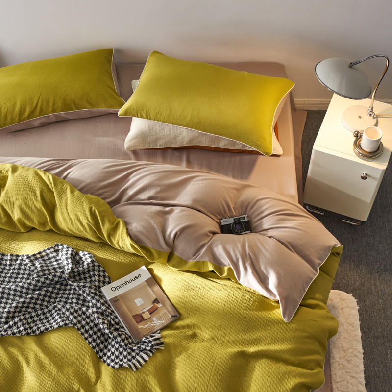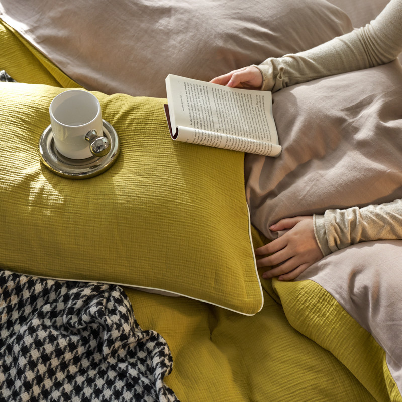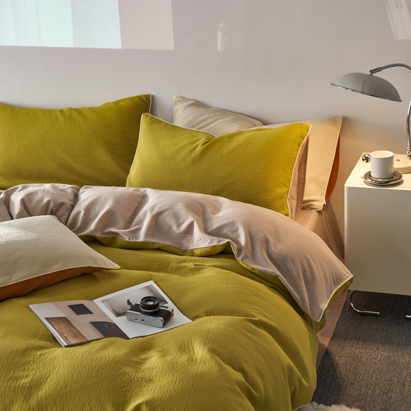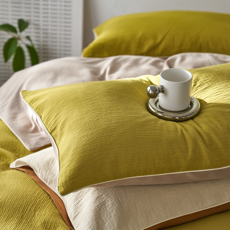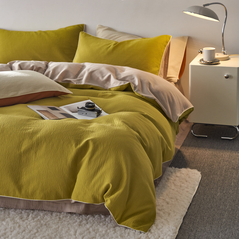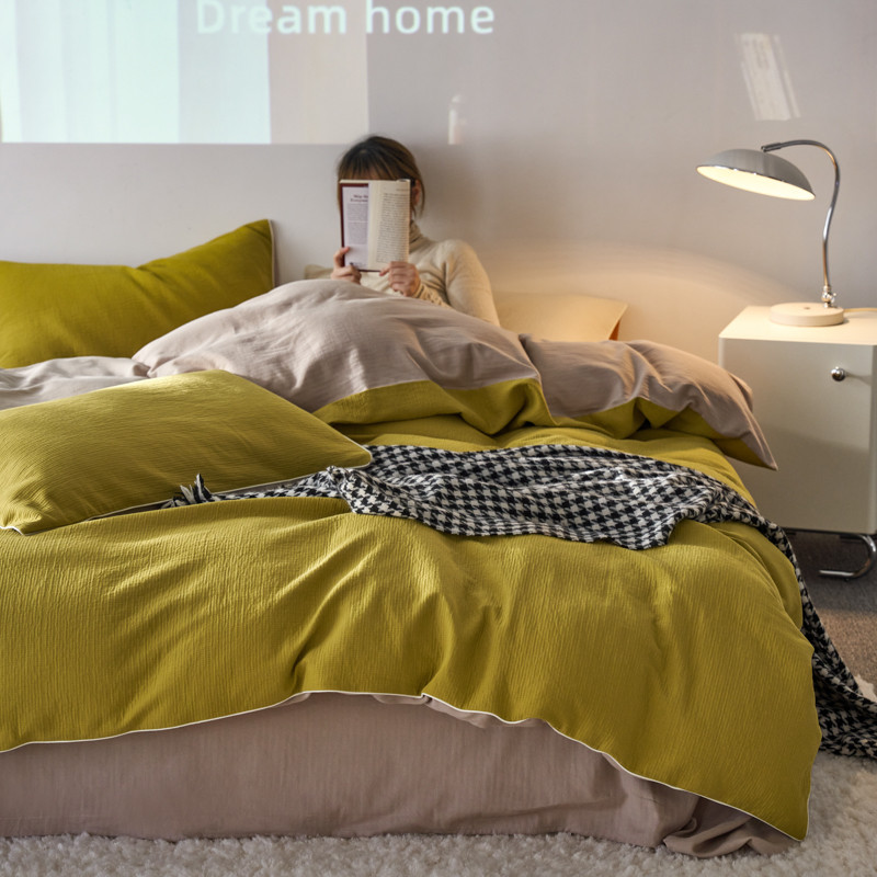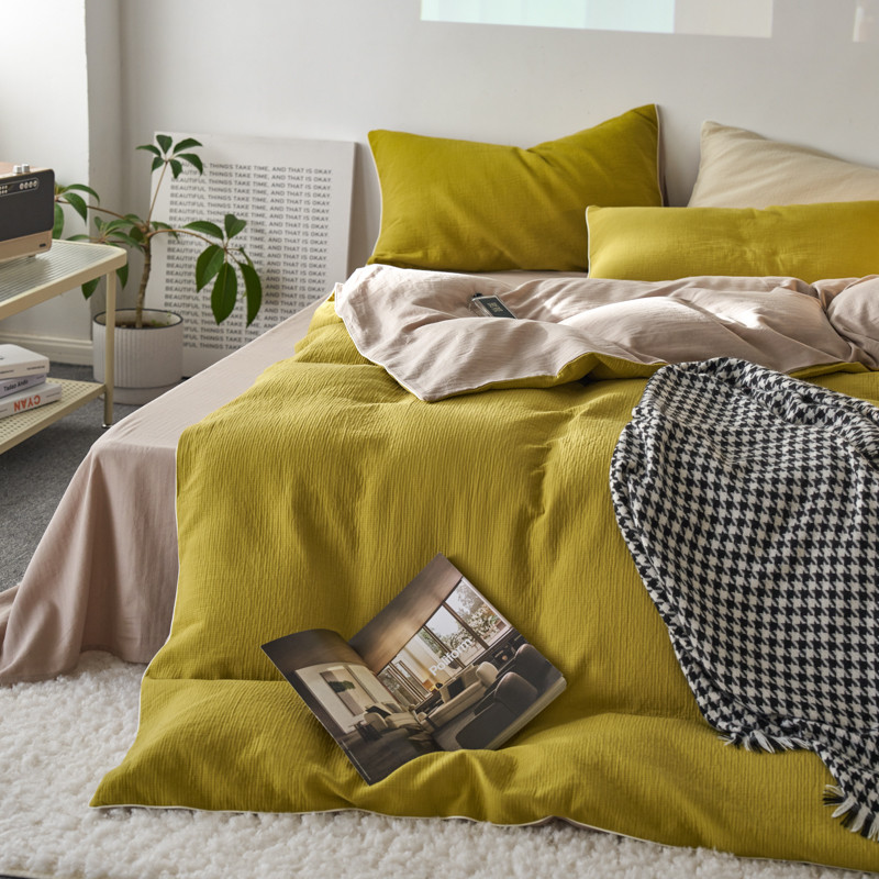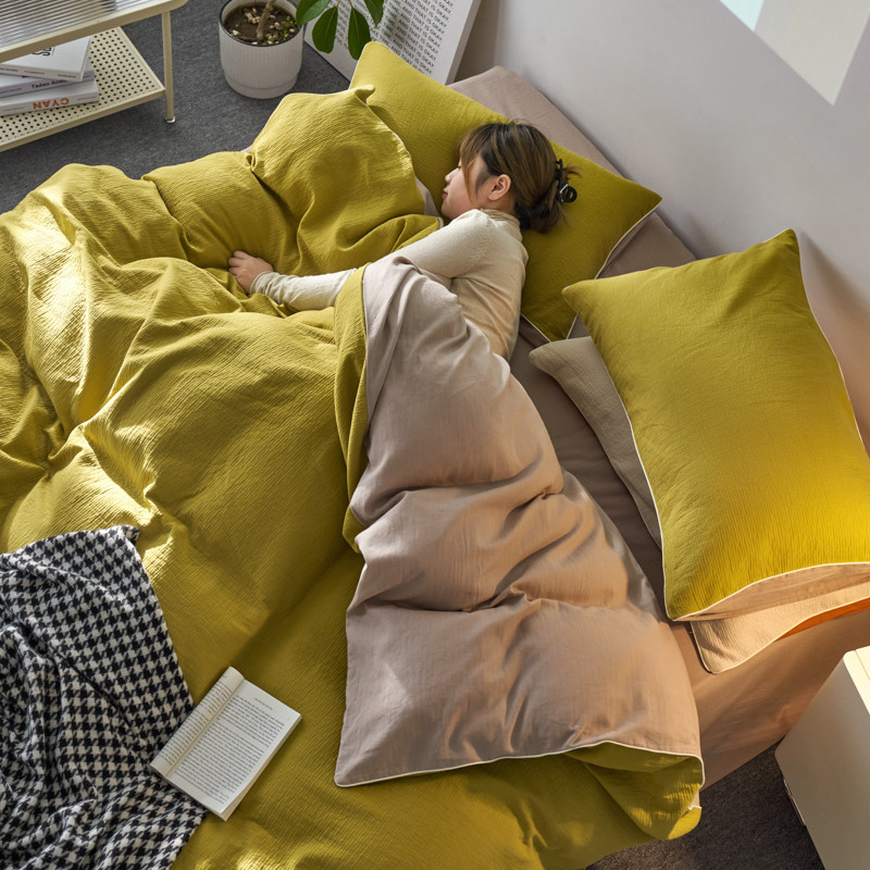 商品名称:简家居 2023新款全棉三层纱四件套 杏黄