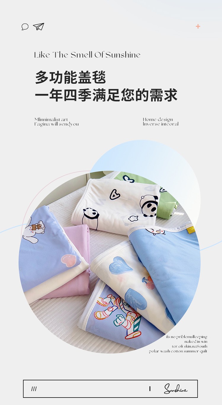 商品名称:潮邦 2025新款A类多功能针织棉童毯盖毯子毛毯 萌宠兔兔