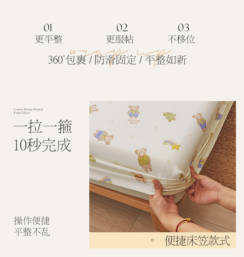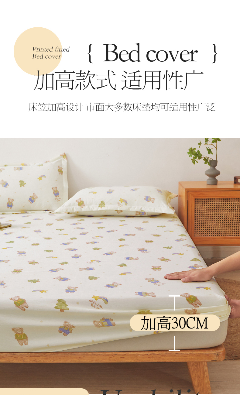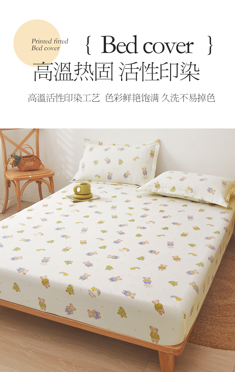 新款水洗棉麻防尘抗菌单层床笠全包床罩 童话乐园