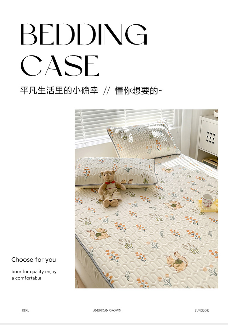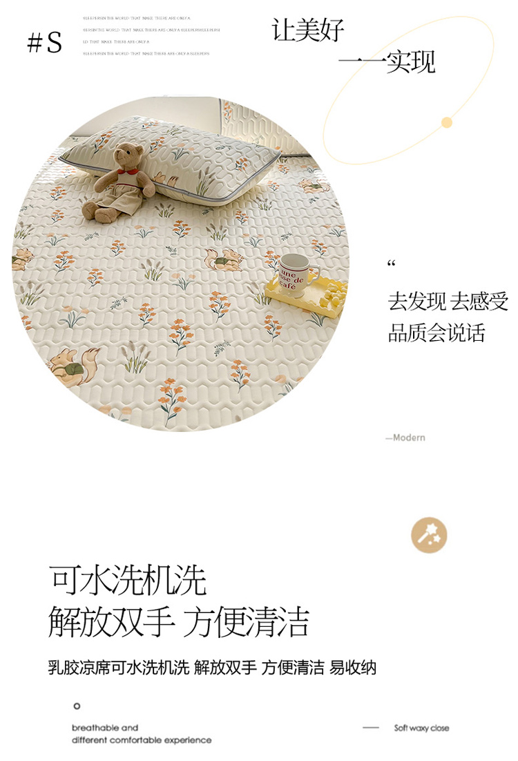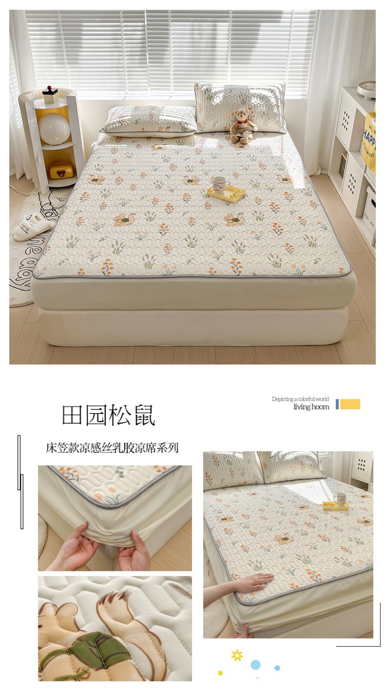 商品名称:沐慕 2023新款小清新床笠款乳胶凉席 田园松鼠