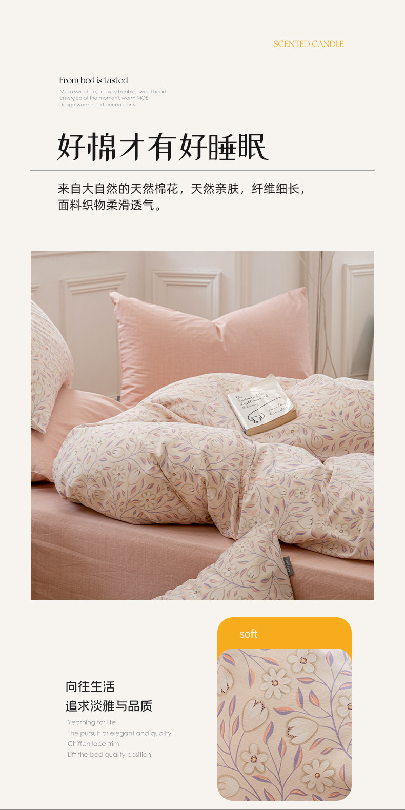 当前位置: 91家纺网 > 商品网购 > 床品套件 > 四件套 > 全棉普通四件套 > 2023时光里 春夏全棉印花系列 四件套 夏语-粉