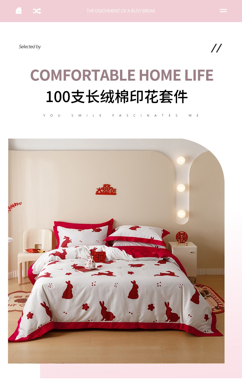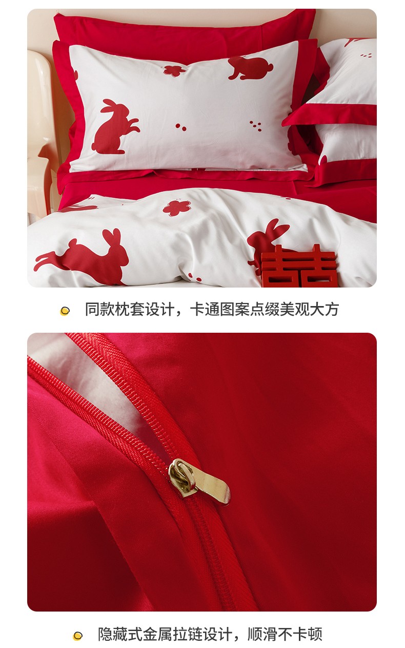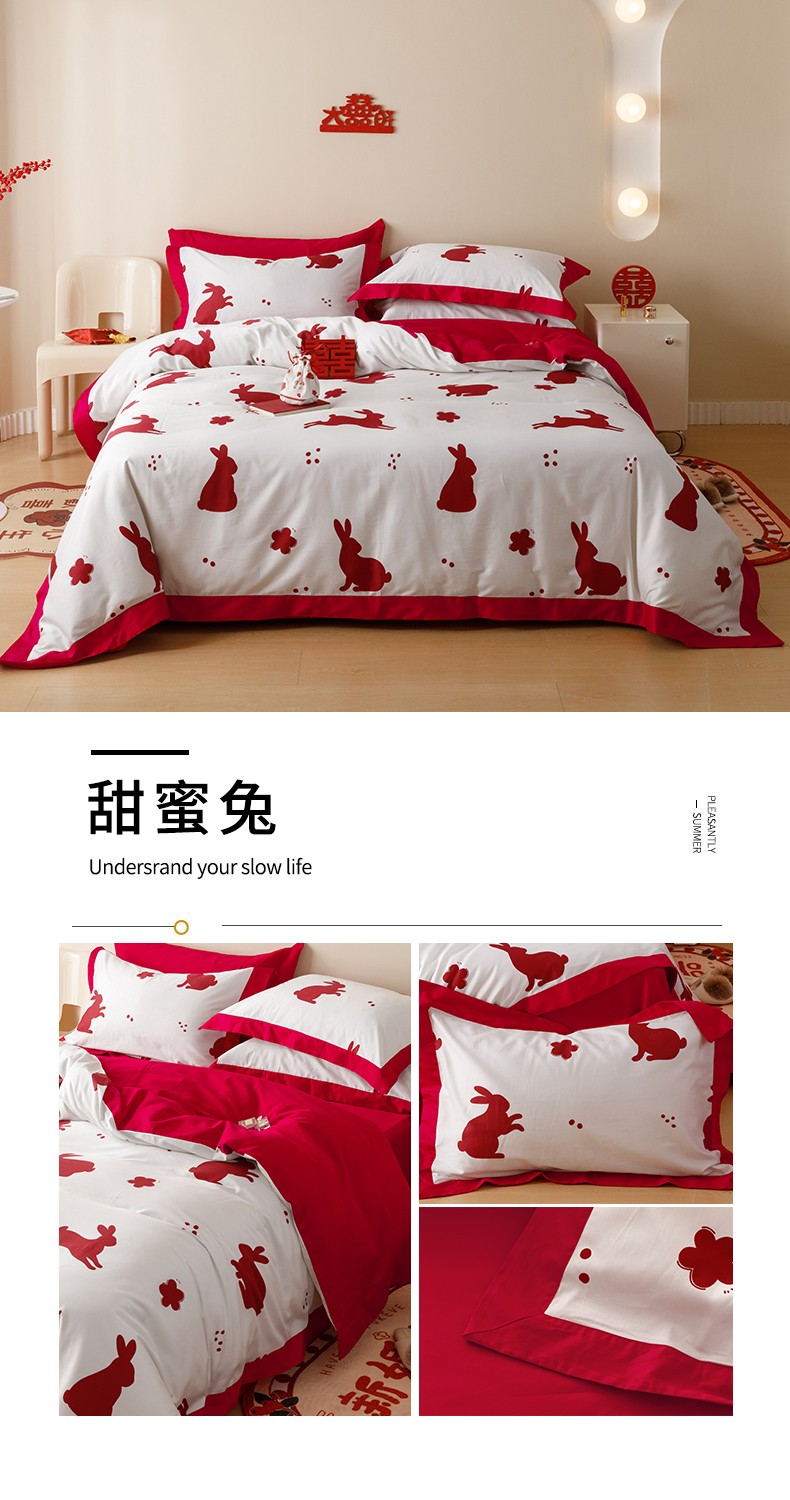 商品名称:用心 2023新款长绒棉婚庆四件套家居 甜蜜兔