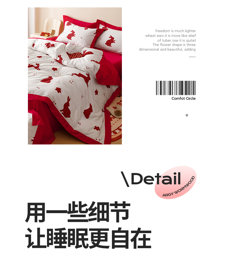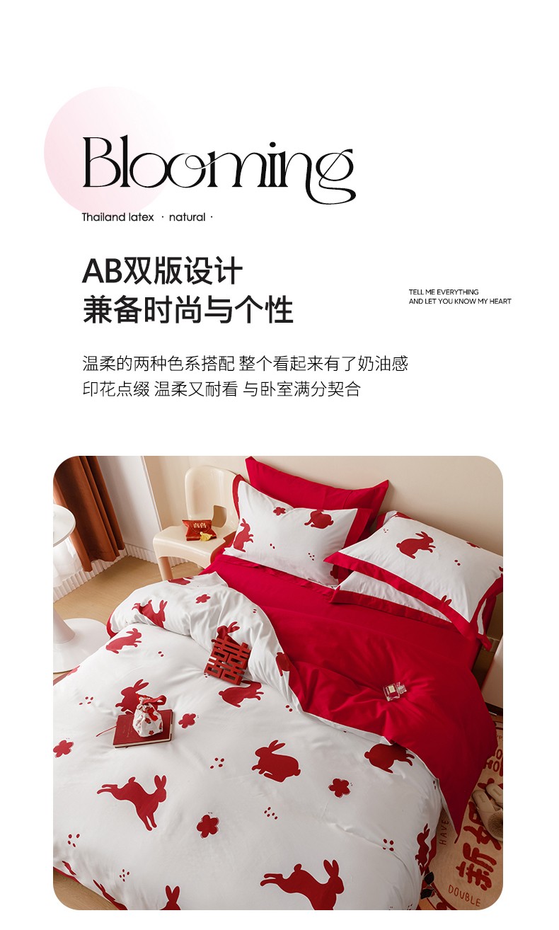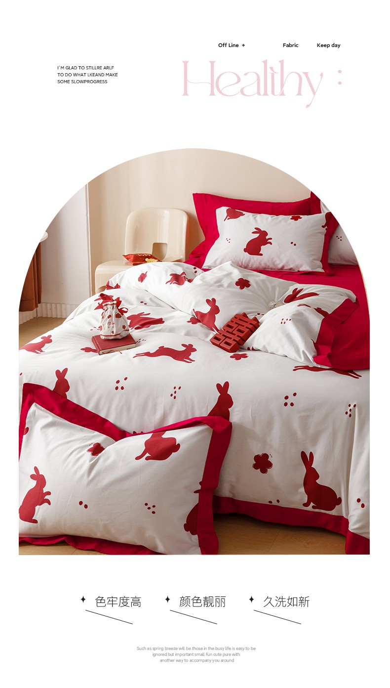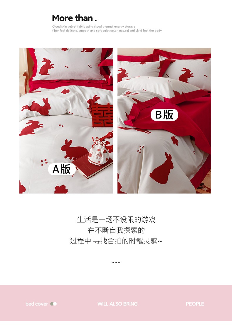 商品名称:用心 2023新款长绒棉婚庆四件套家居 甜蜜兔