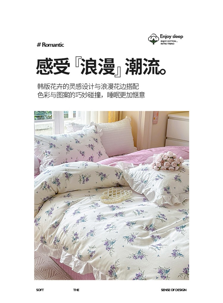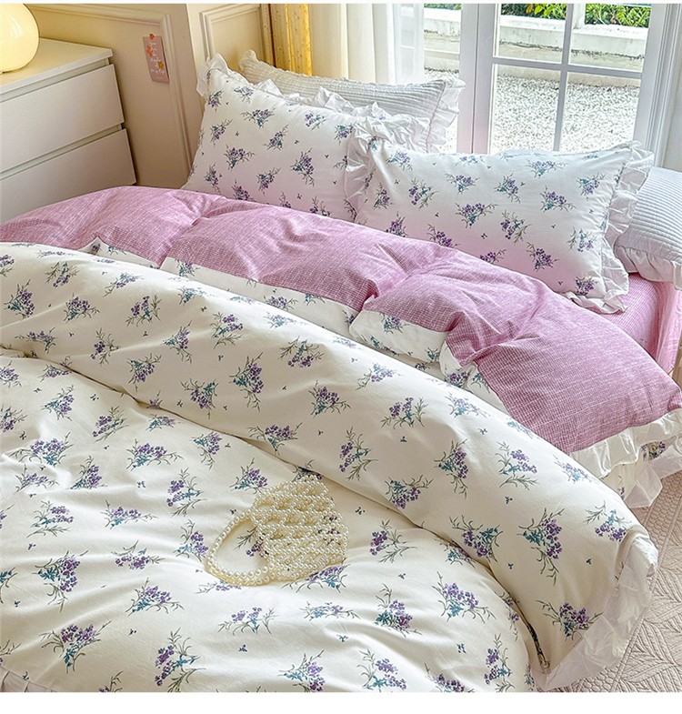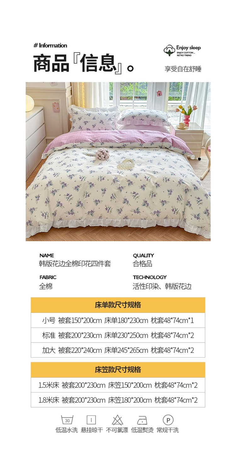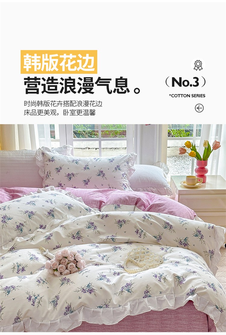 商品名称:清雅福 2024新款全棉13372韩版花边款系列四件套 薰衣草