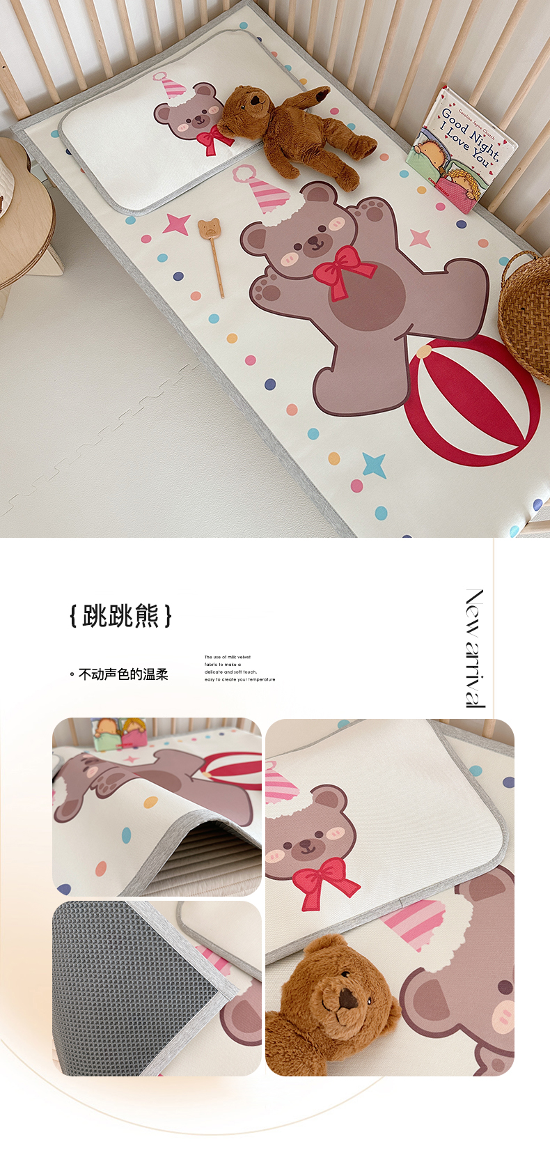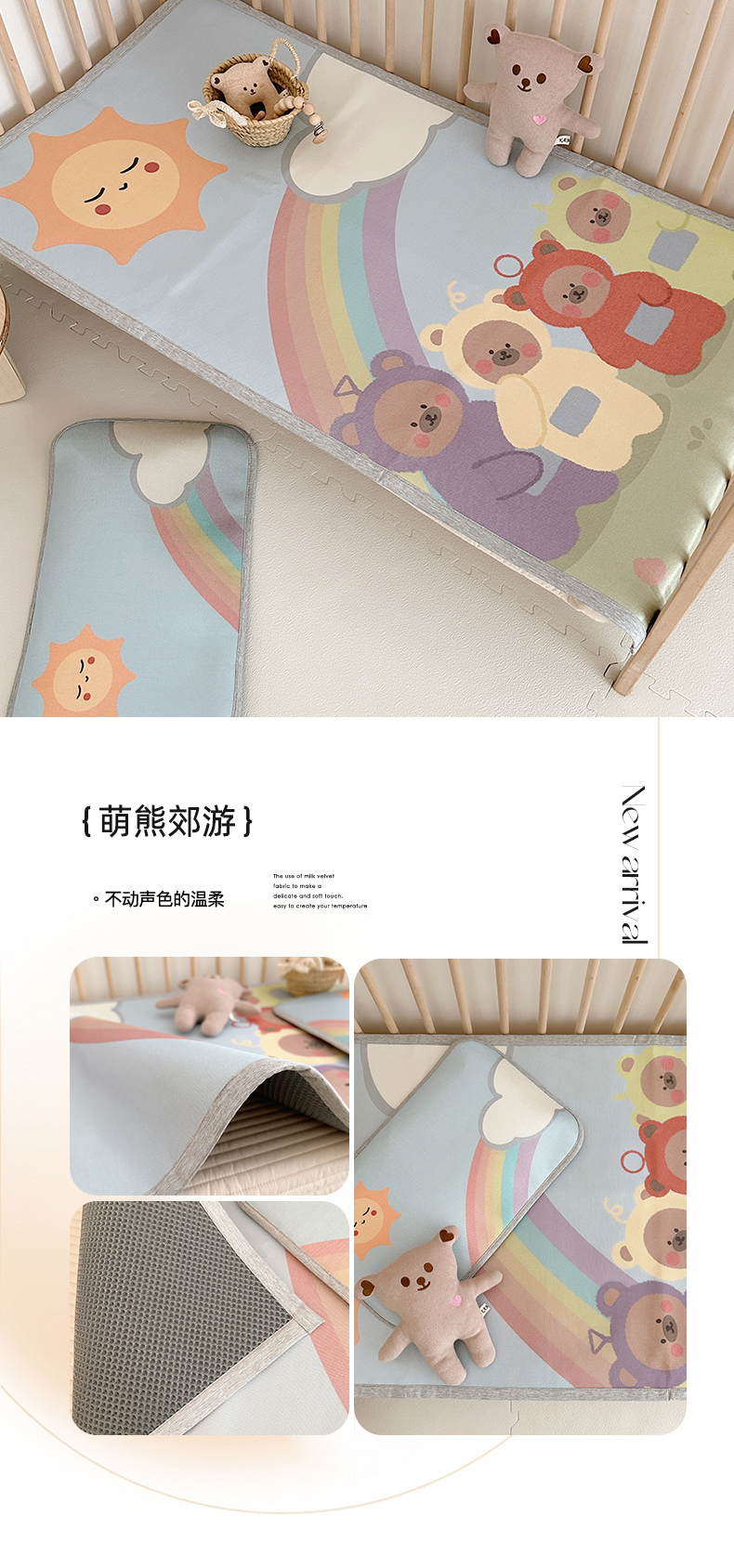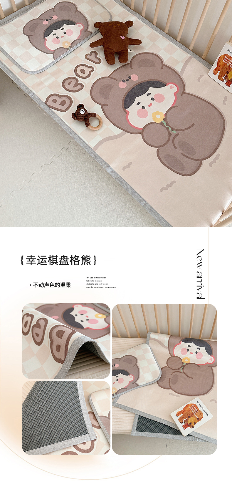 (总)橘滋 2025夏日新款高端A类原创设计婴儿童趣卡通数码印花冰丝席凉席-床席床笠,大眼熊仔,叠叠乐园,蝴蝶结兔兔,欢乐曲奇,木马小熊,太空冒险,熊猫胖达