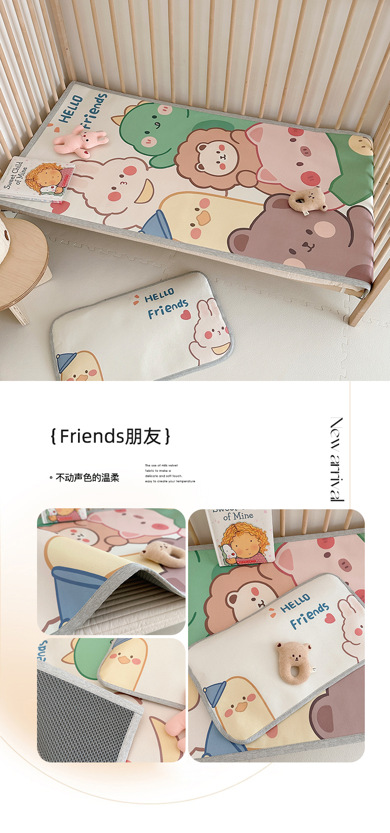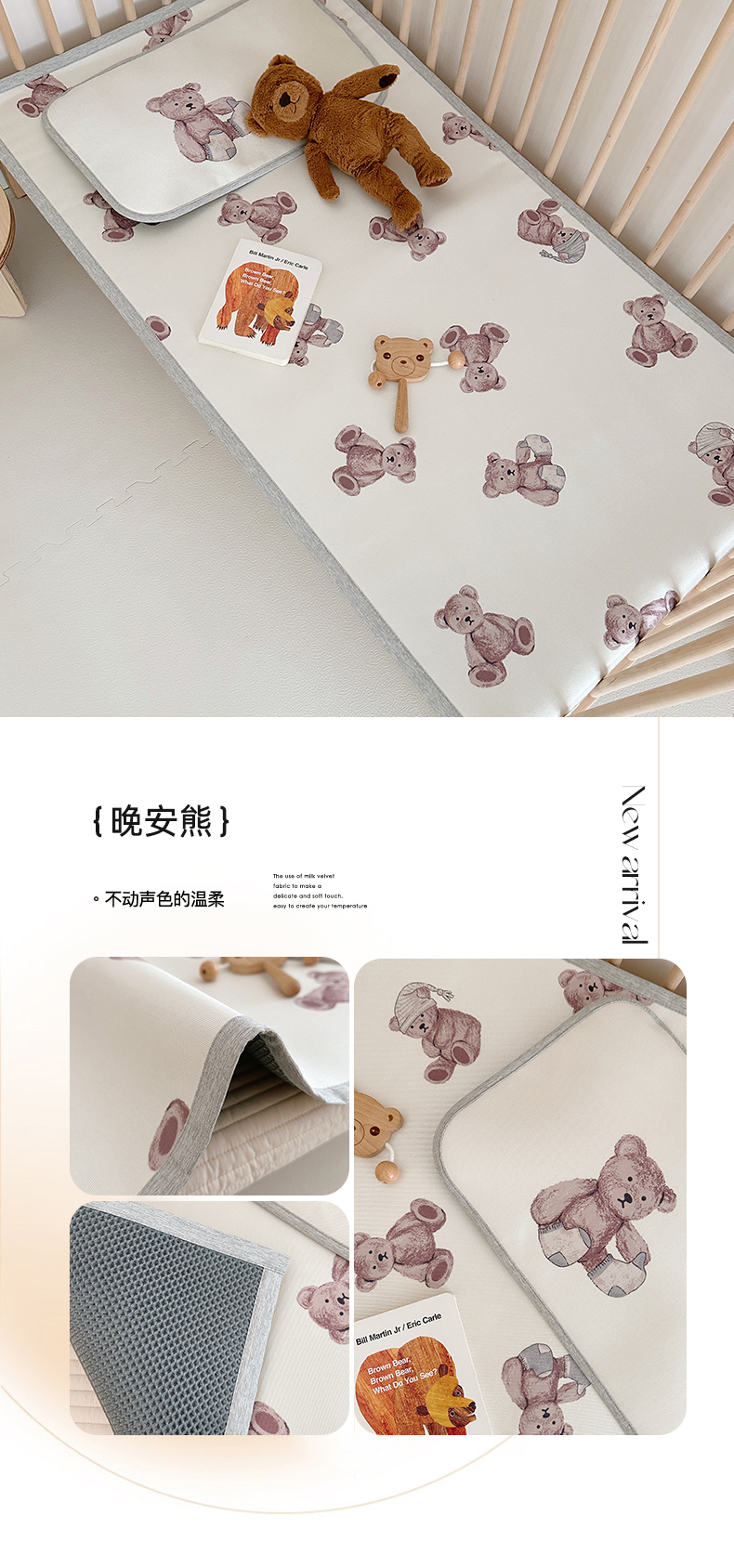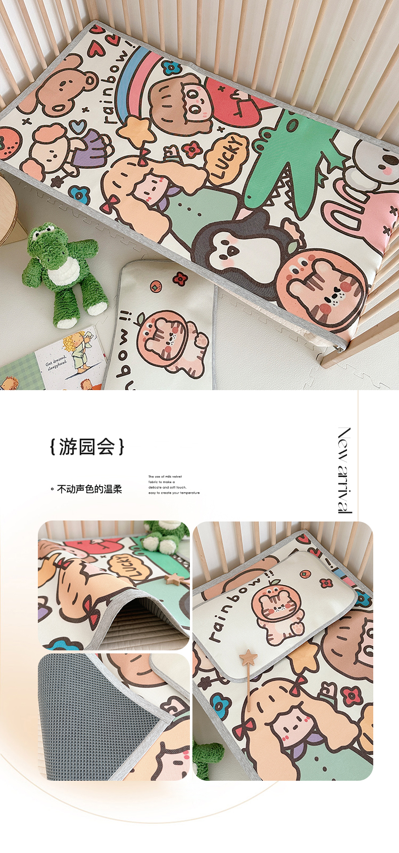 (总)橘滋 2025夏日新款高端A类原创设计婴儿童趣卡通数码印花冰丝席凉席-床席床笠,大眼熊仔,叠叠乐园,蝴蝶结兔兔,欢乐曲奇,木马小熊,太空冒险,熊猫胖达
