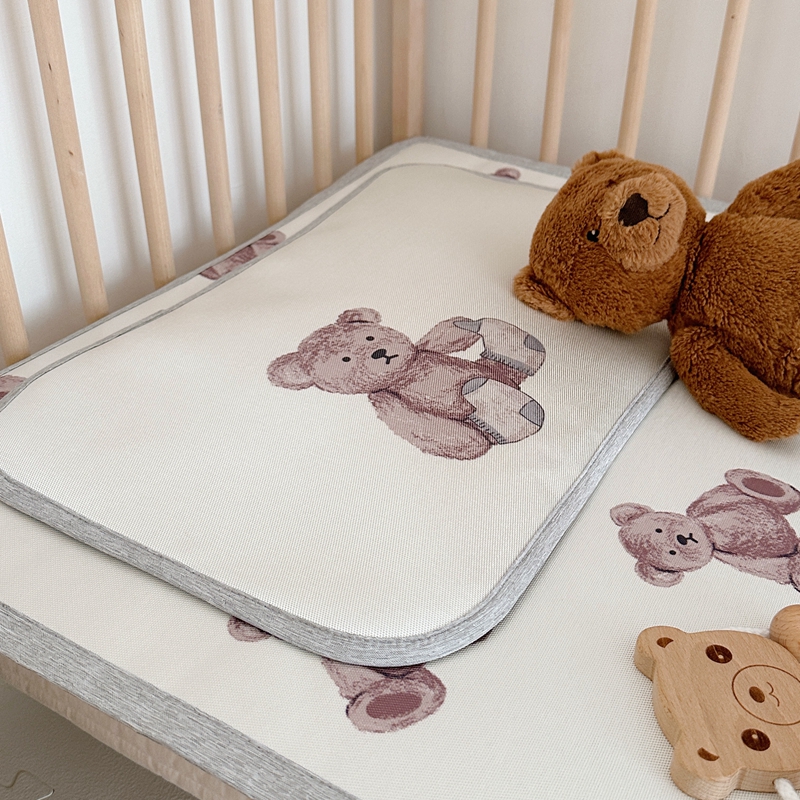 (总)橘滋 2025夏日新款高端A类原创设计婴儿童趣卡通数码印花冰丝席凉席-床席床笠,大眼熊仔,叠叠乐园,蝴蝶结兔兔,欢乐曲奇,木马小熊,太空冒险,熊猫胖达