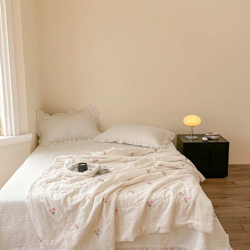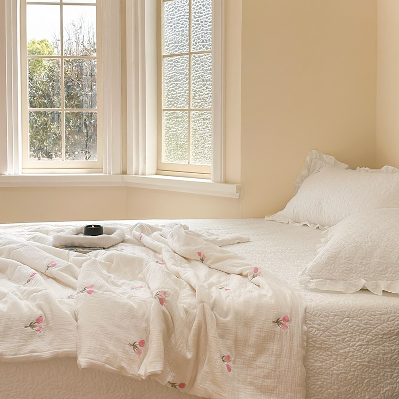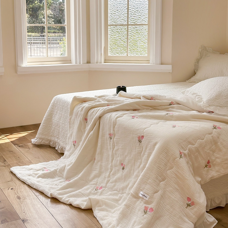 洋铭区 2023新款全棉皱皱双层纱夏被 粉色郁金香