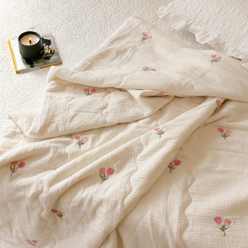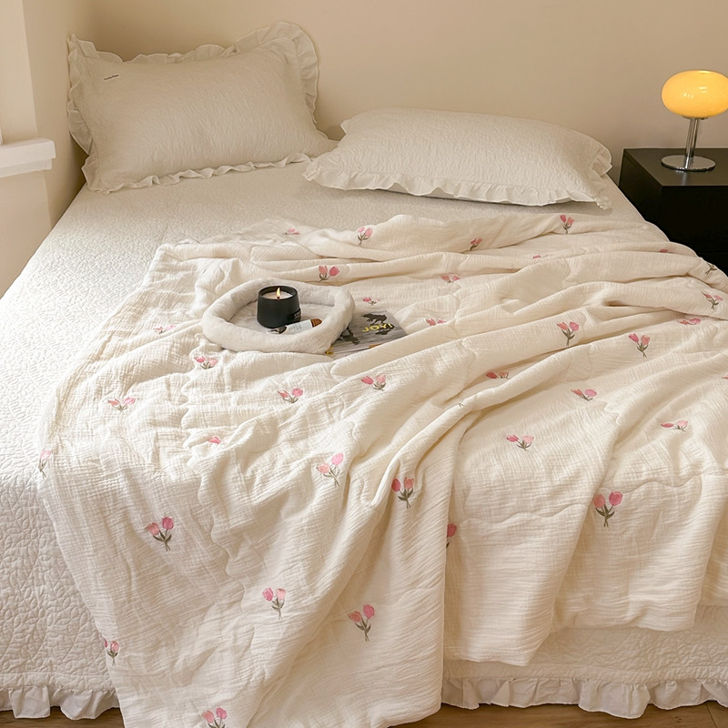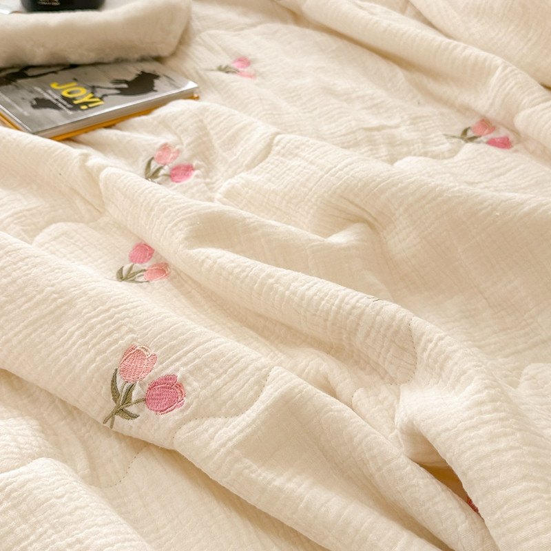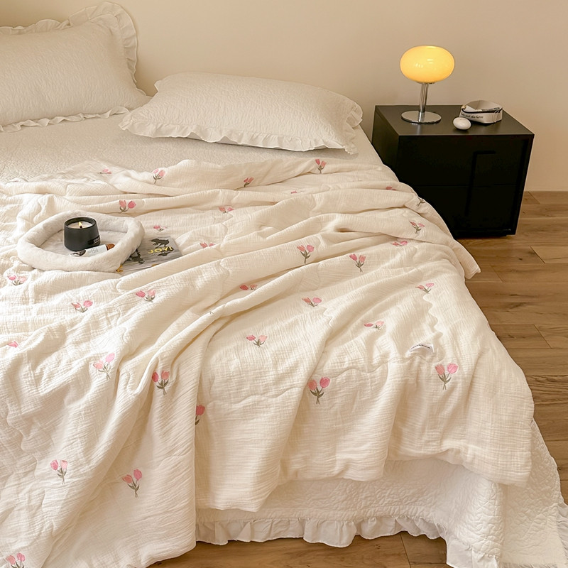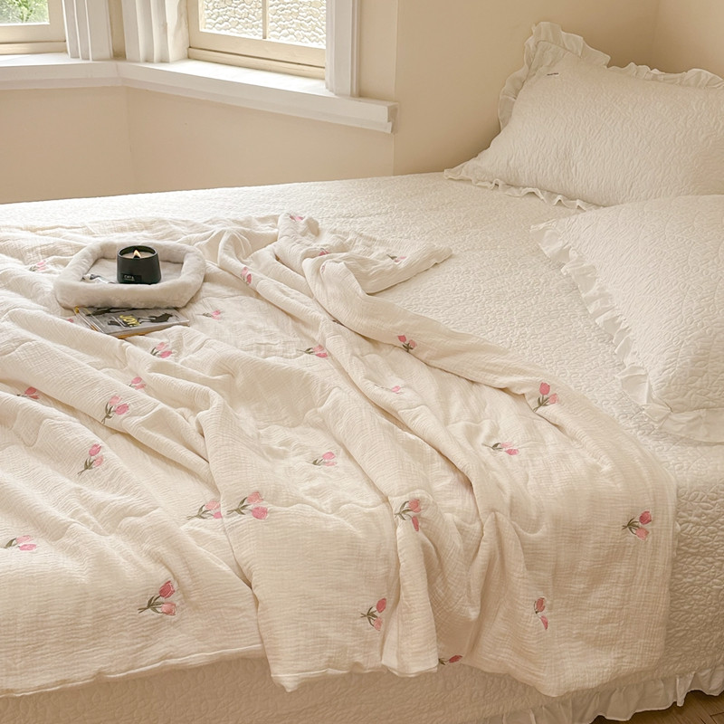 商品名称:洋铭区 2023新款全棉皱皱双层纱夏被 粉色郁金香