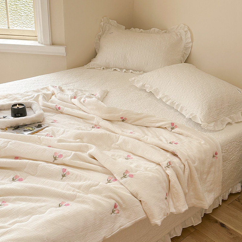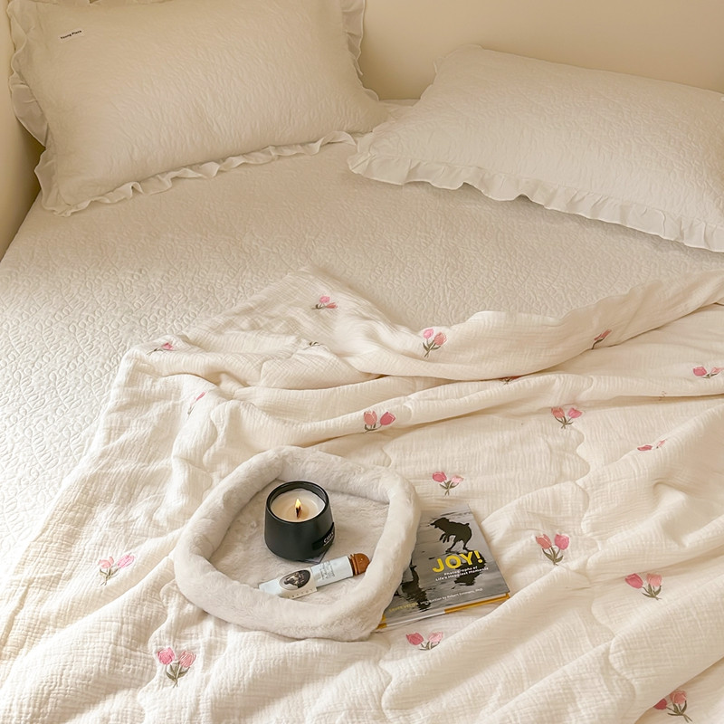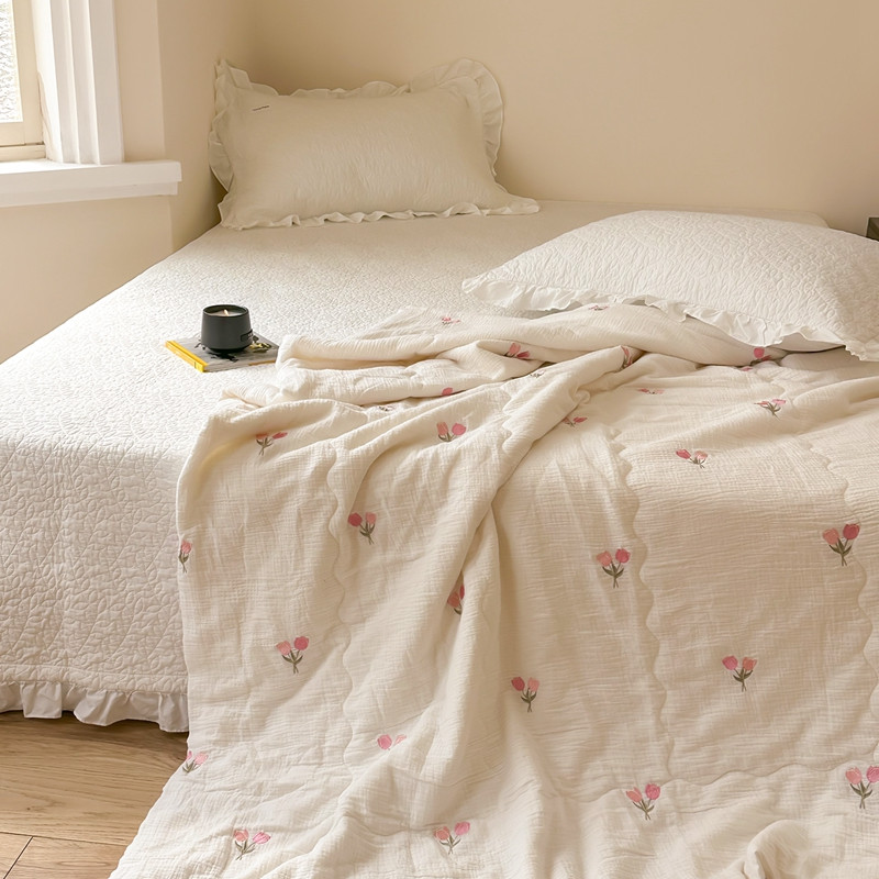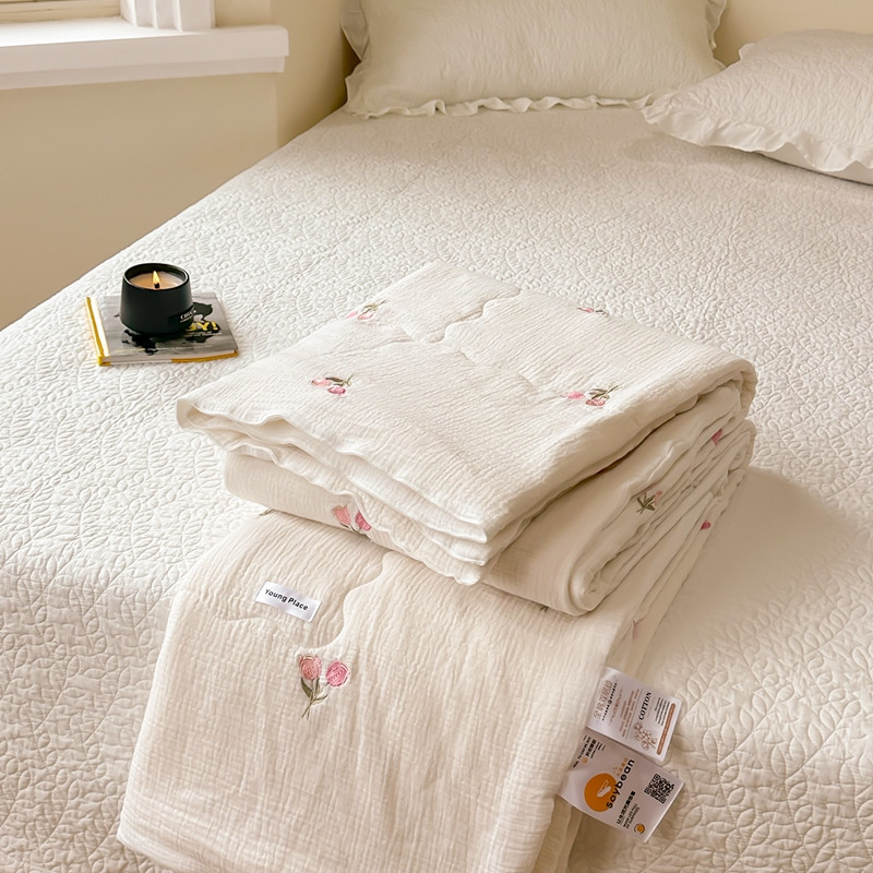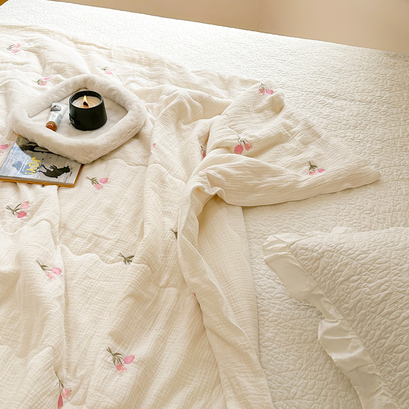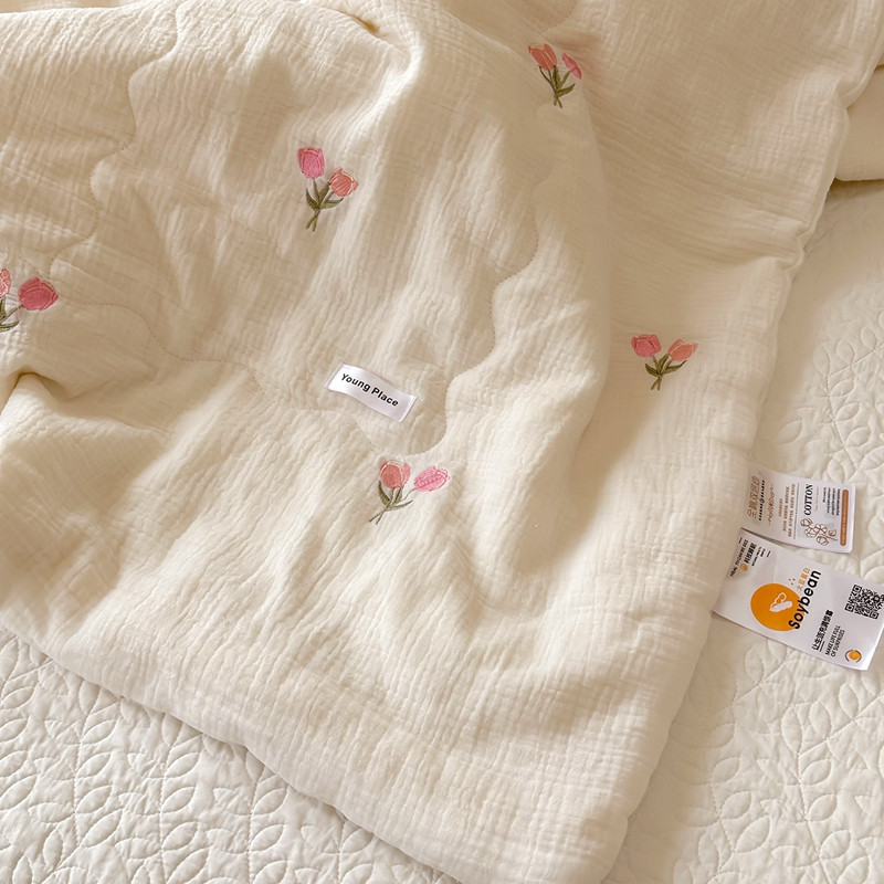 商品名称:洋铭区 2023新款全棉皱皱双层纱夏被 粉色郁金香