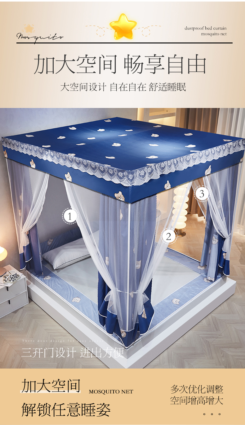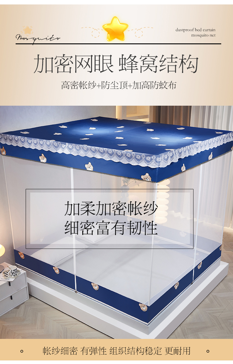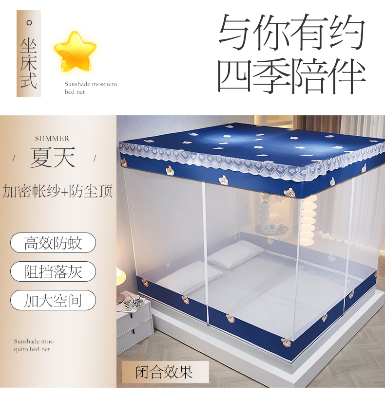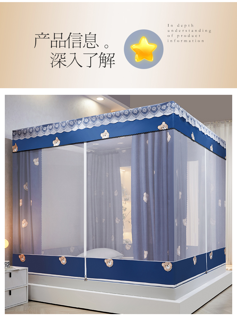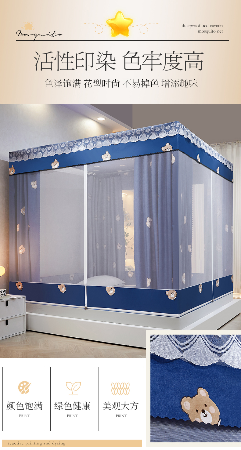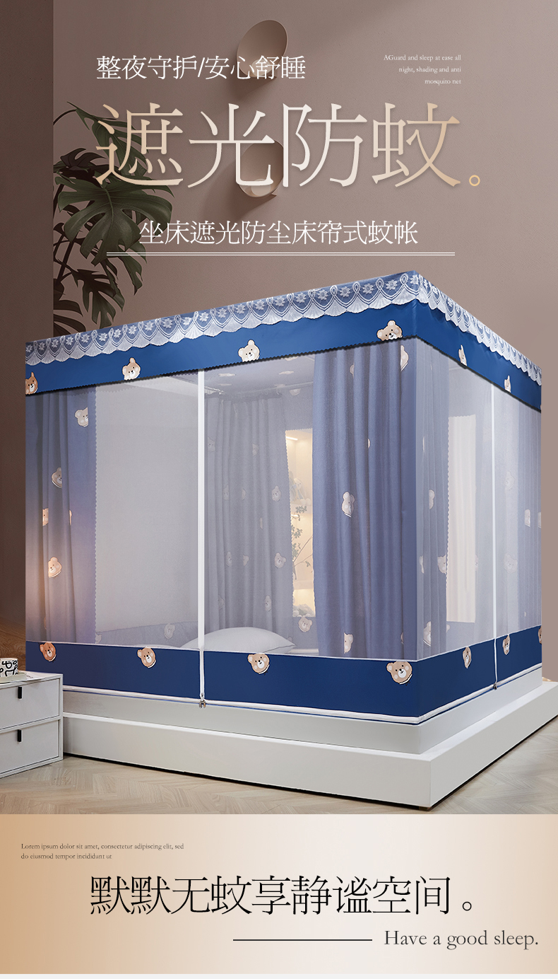 显高蚊帐2025新款坐床遮光防尘坐床回底遮光蚊帐系列 幸福小熊