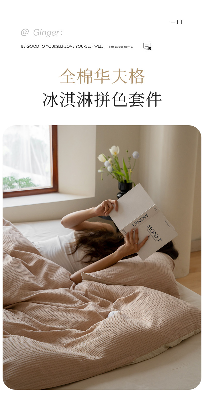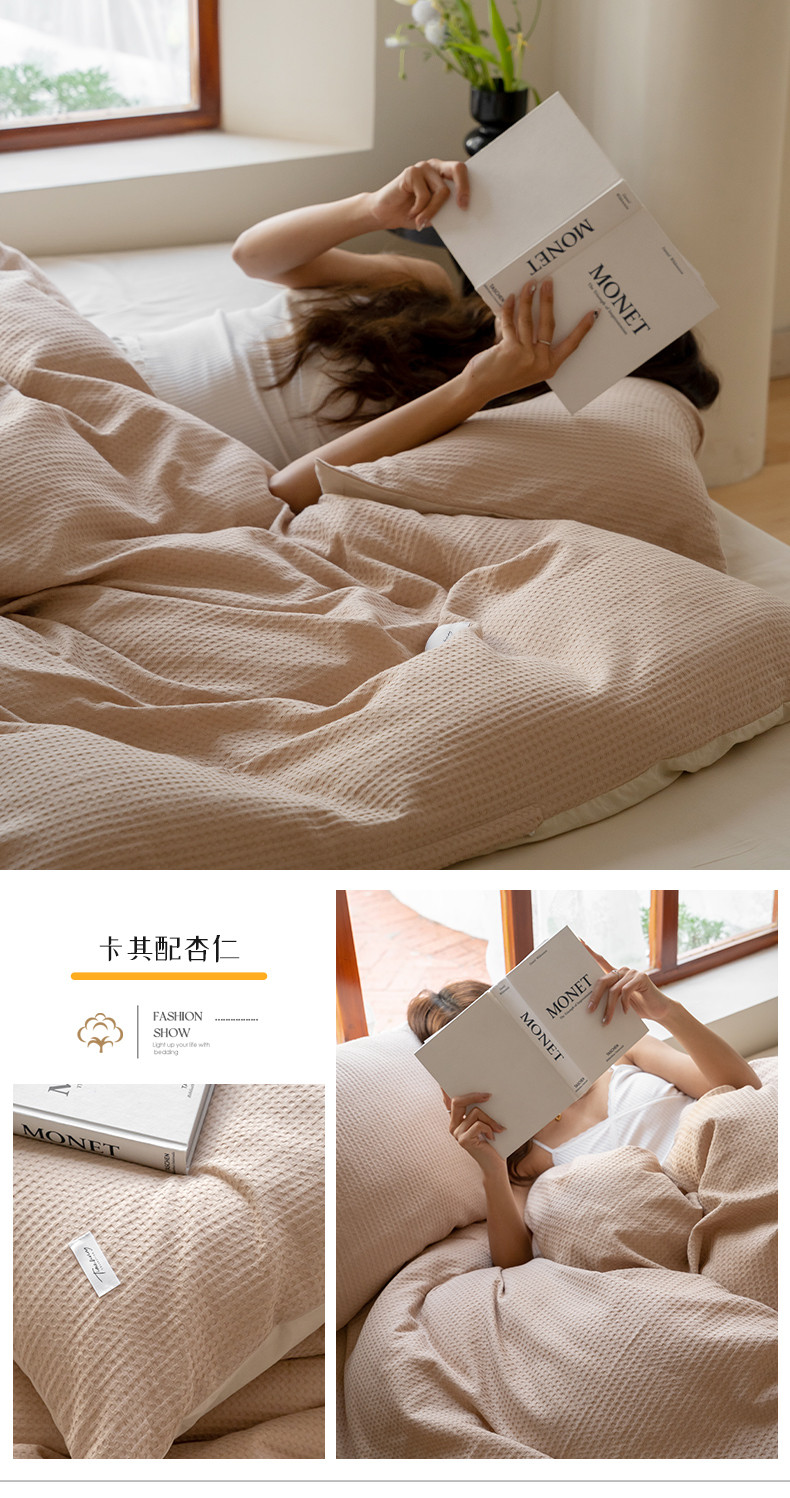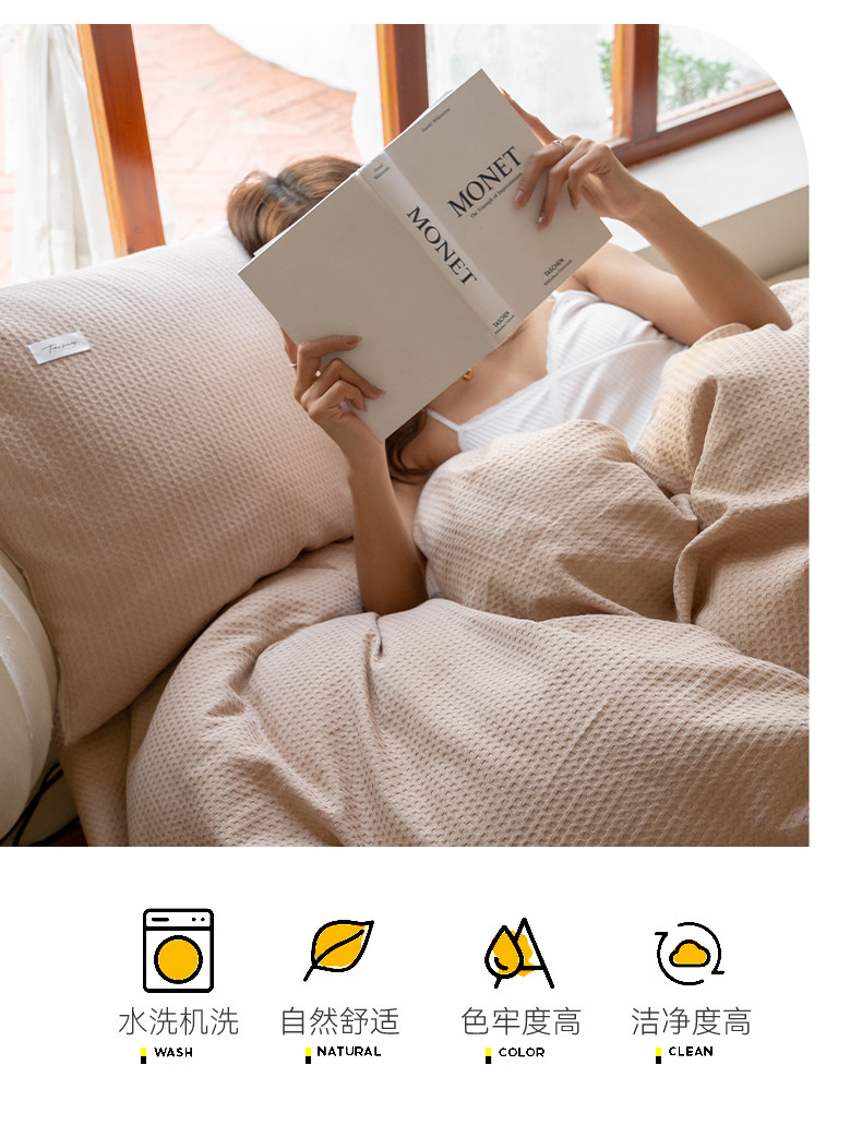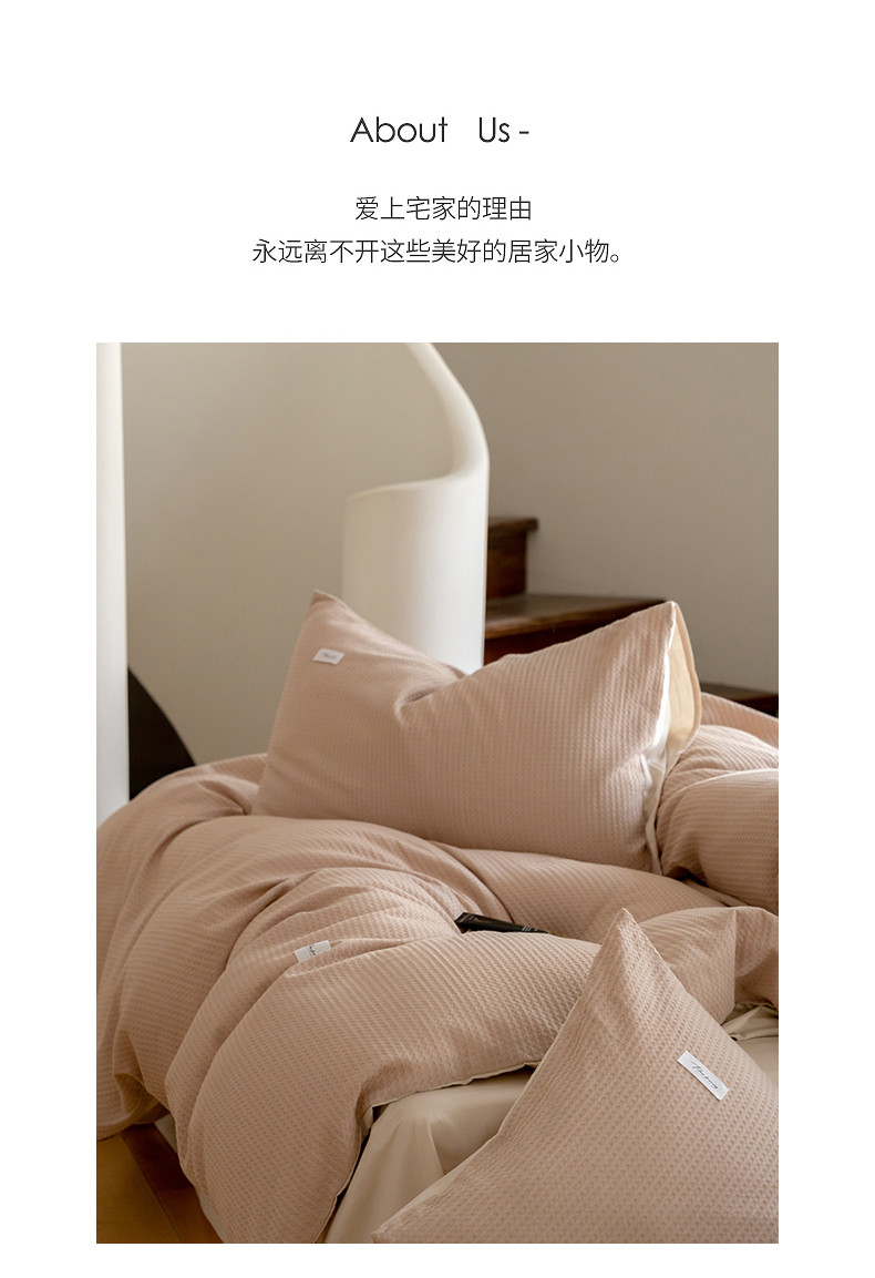 当前位置: 91家纺网 > 商品网购 > 床品套件 > 四件套 > 全棉普通四件套 > 时光里 2023新款60支全棉华夫格四件套 卡其配杏仁