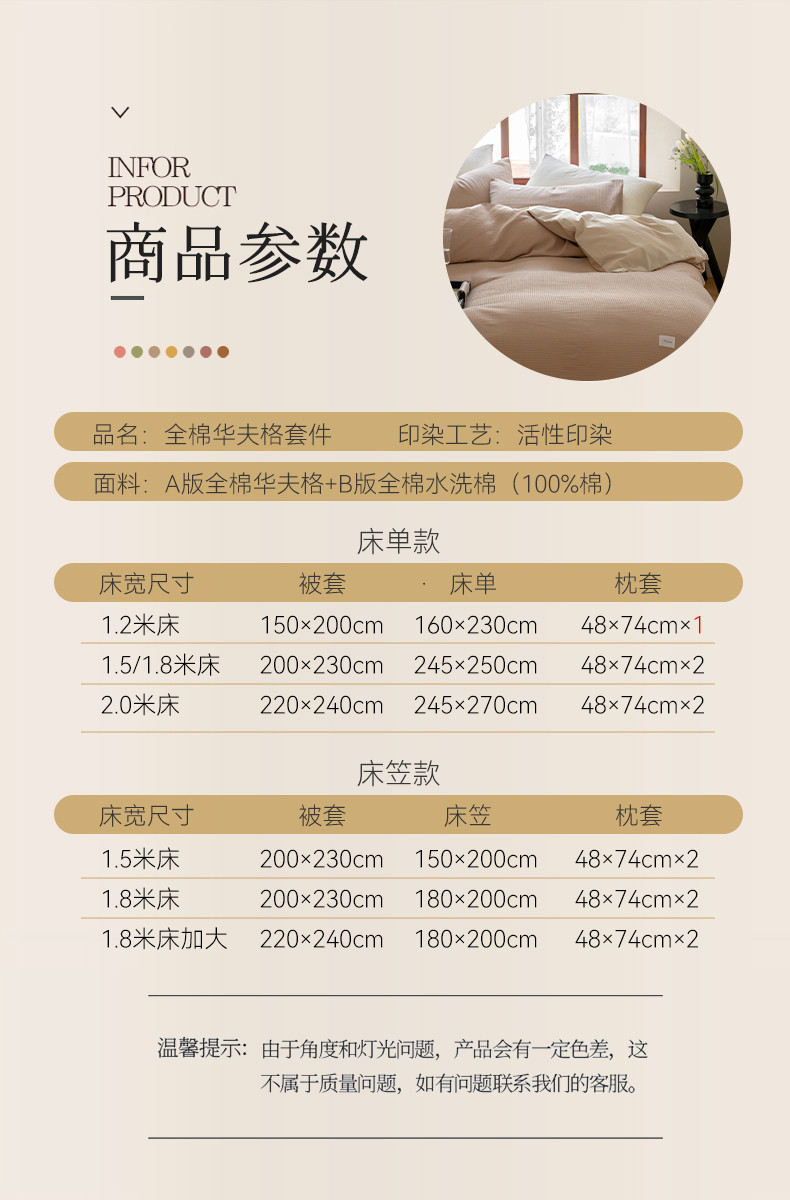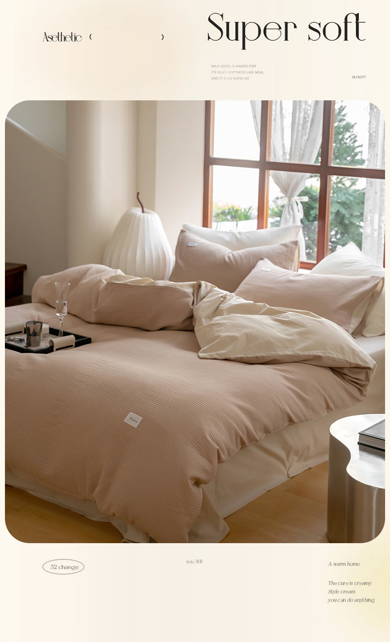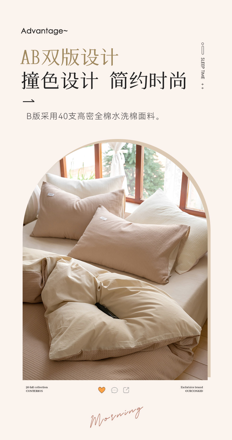 当前位置: 91家纺网 > 商品网购 > 床品套件 > 四件套 > 全棉普通四件套 > 时光里 2023新款60支全棉华夫格四件套 卡其配杏仁
