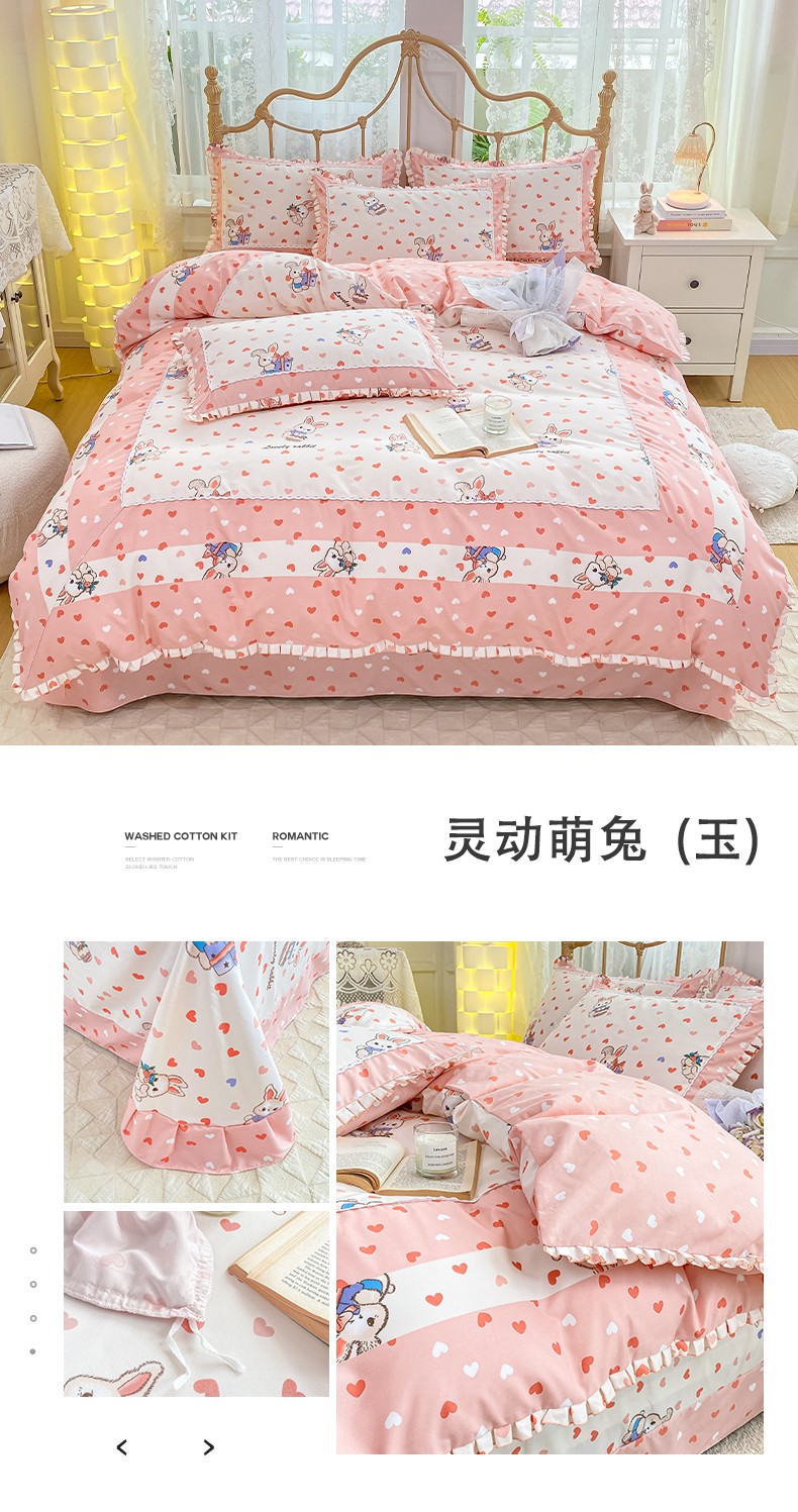 商品名称:皇谱家纺 2024韩版欧彩棉四件套磨毛直播爆款专版花型 灵动萌兔(玉)