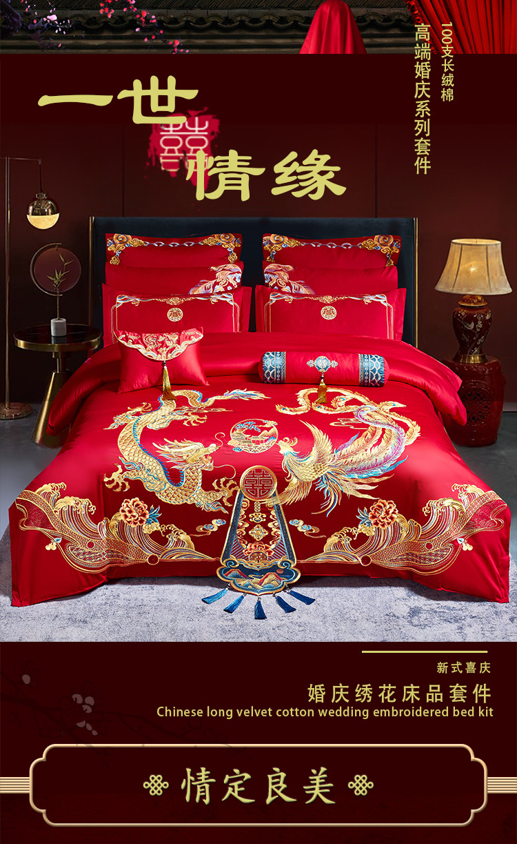 当前位置: 91家纺网 > 商品网购 > 床品套件 > 四件套 > 婚庆四件套 > 振翼 2025新款40s全棉丝光喷气婚庆四件套多件套 一世情缘
